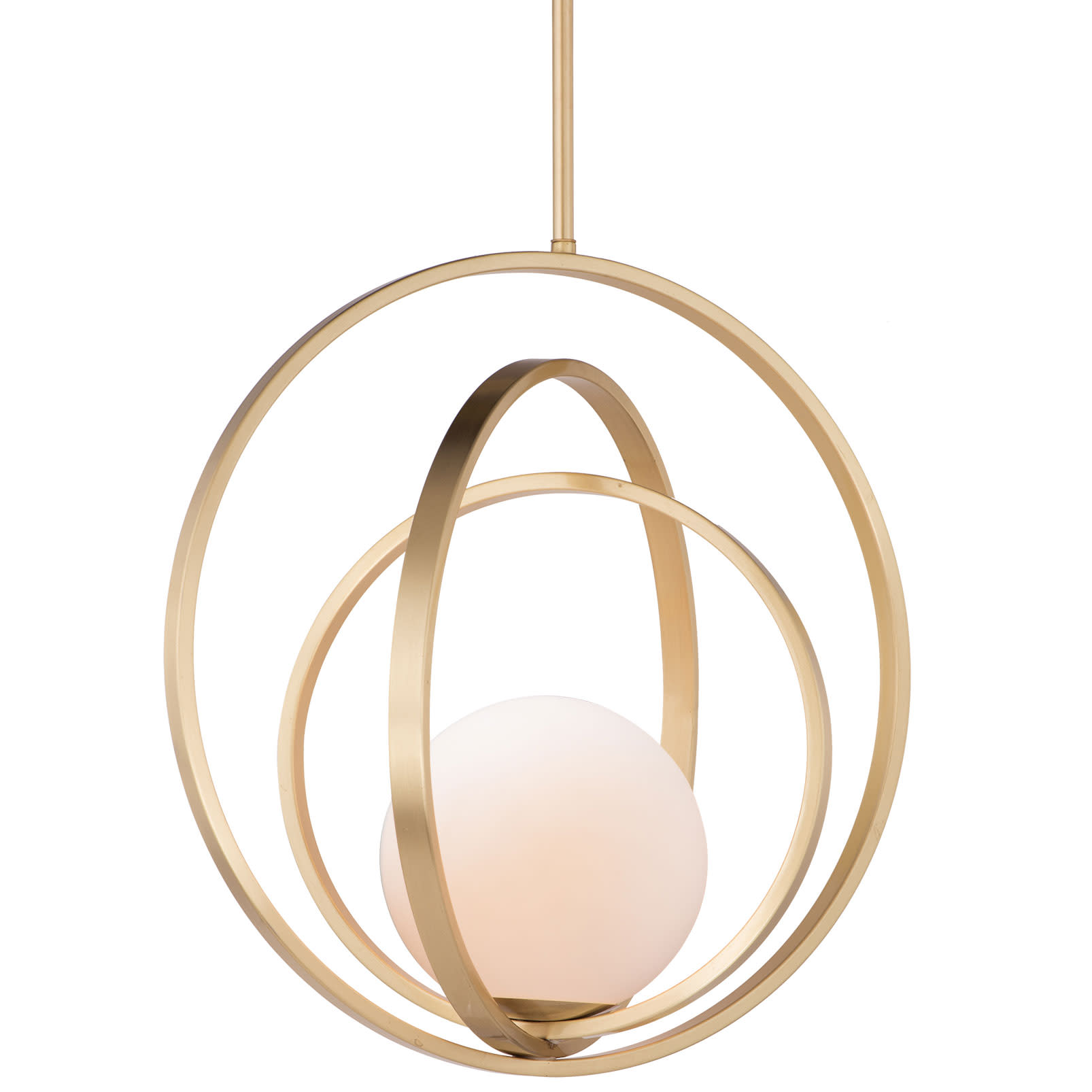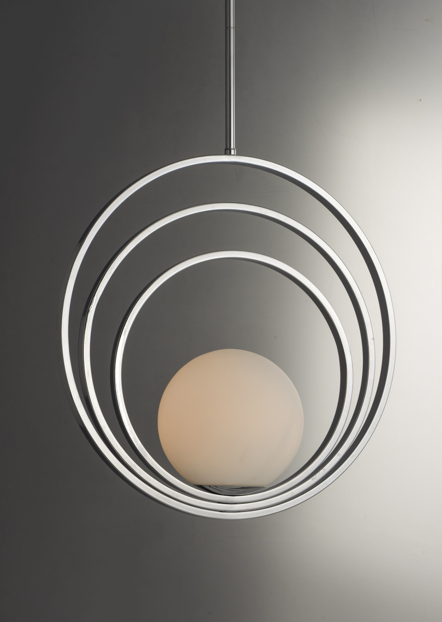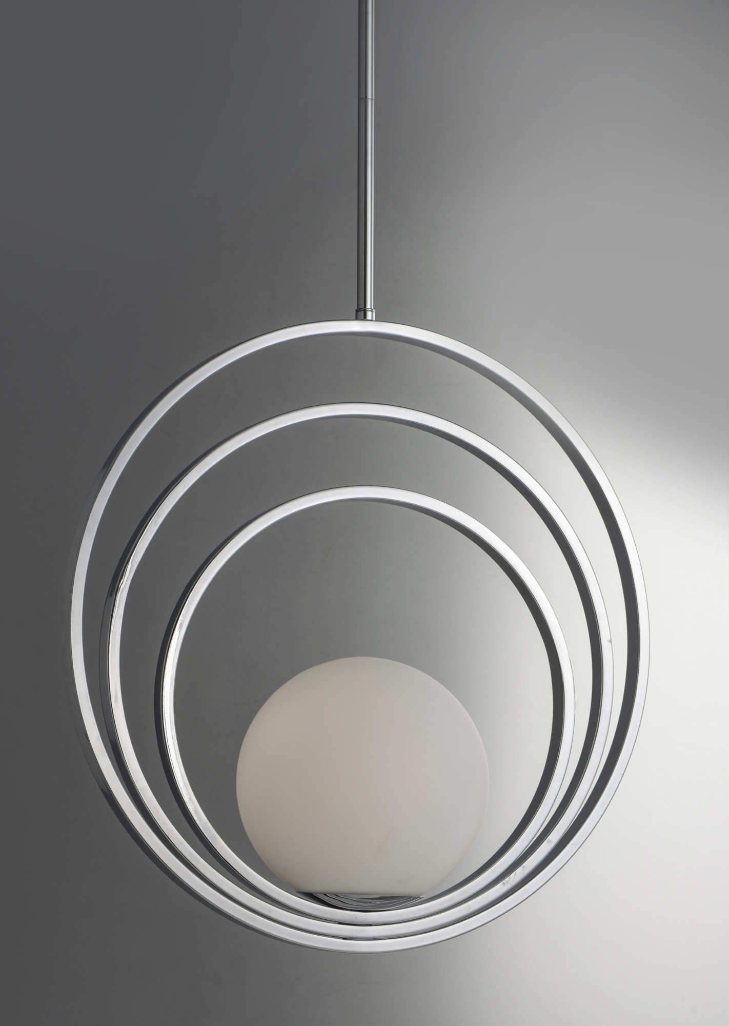 Item DescriptionAdjustable rings available in Polished Chrome or Satin Brass add dimension to this contemporary pendant design. Opal white glass softly diffuses light to complete the look.
