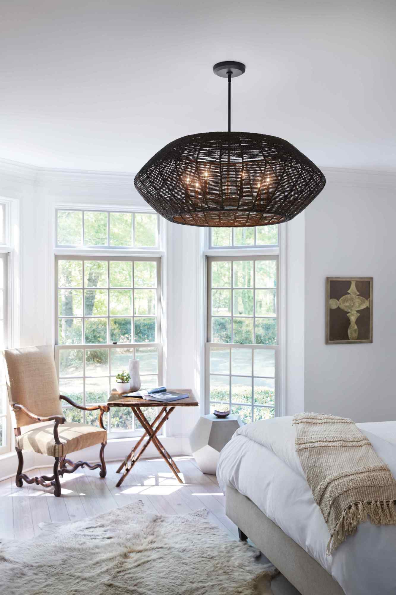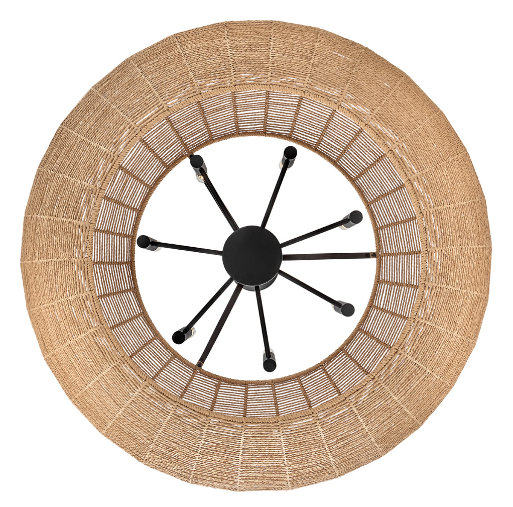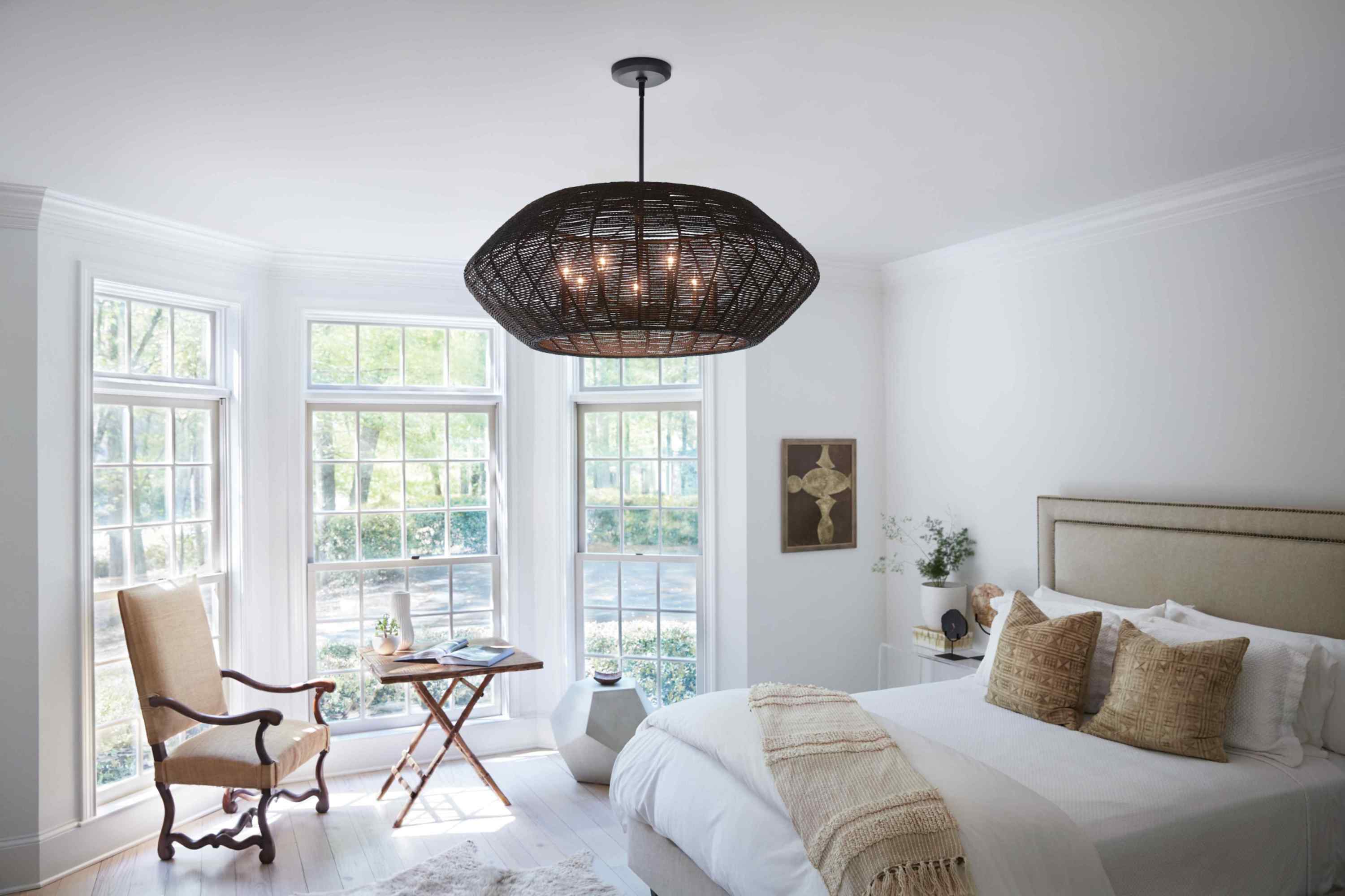 The Luca Collection's coastal vibe is permeated with a slightly exotic edge. The bold pendant showcases a robust, woven drum shade, and a full finished cluster for plenty of functional light offered in either Black with Black shade, Polished Chrome with Natural shade, or Black with Camel shade.