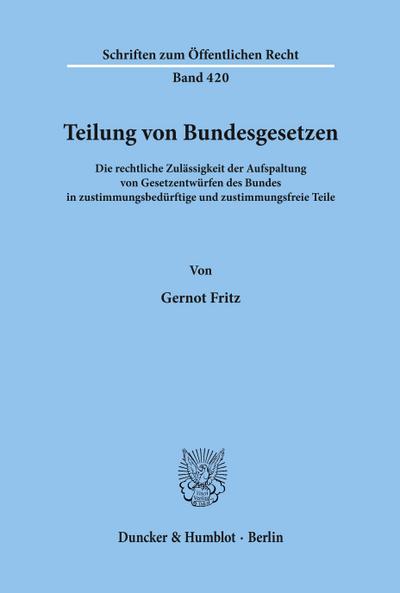 Untertitel: Die rechtliche Zulässigkeit der Aufspaltung von Gesetzentwürfen des Bundes in zustimmungsbedürftige und zustimmungsfreie Teile.