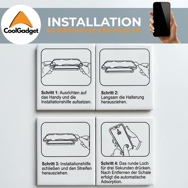 Installations-Schablone (Montagerahmen) positionierst Du das Schutzglas