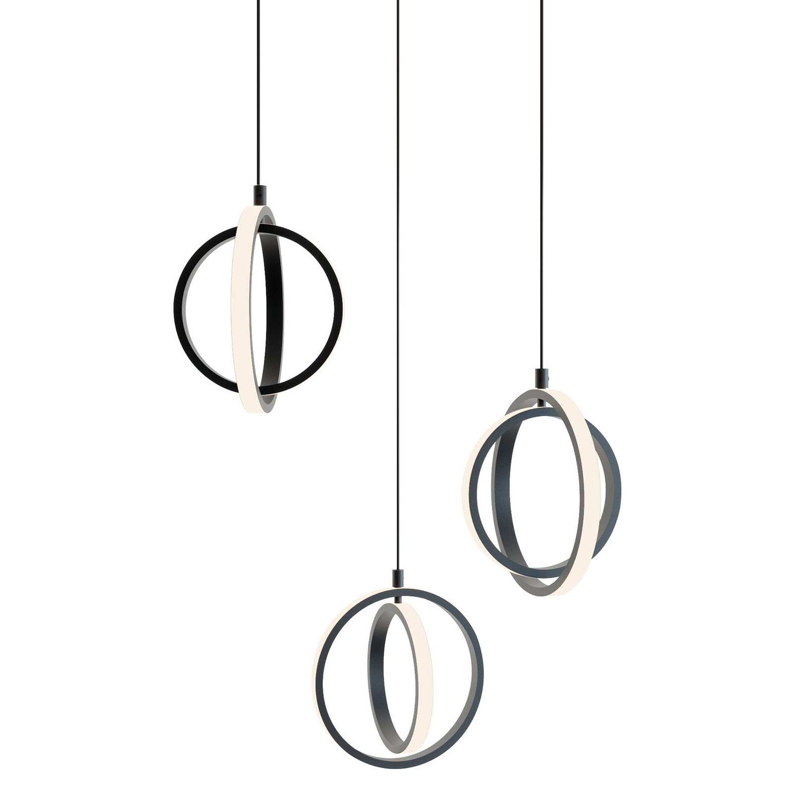 Item DescriptionEterna pendants evoke a Mid-Century Modern styling, with their nested globe and hoop construction. These pendants are sure to be the focus of conversation and enjoyment for years to come. Made from durable steel for years of enjoyment and illumination.