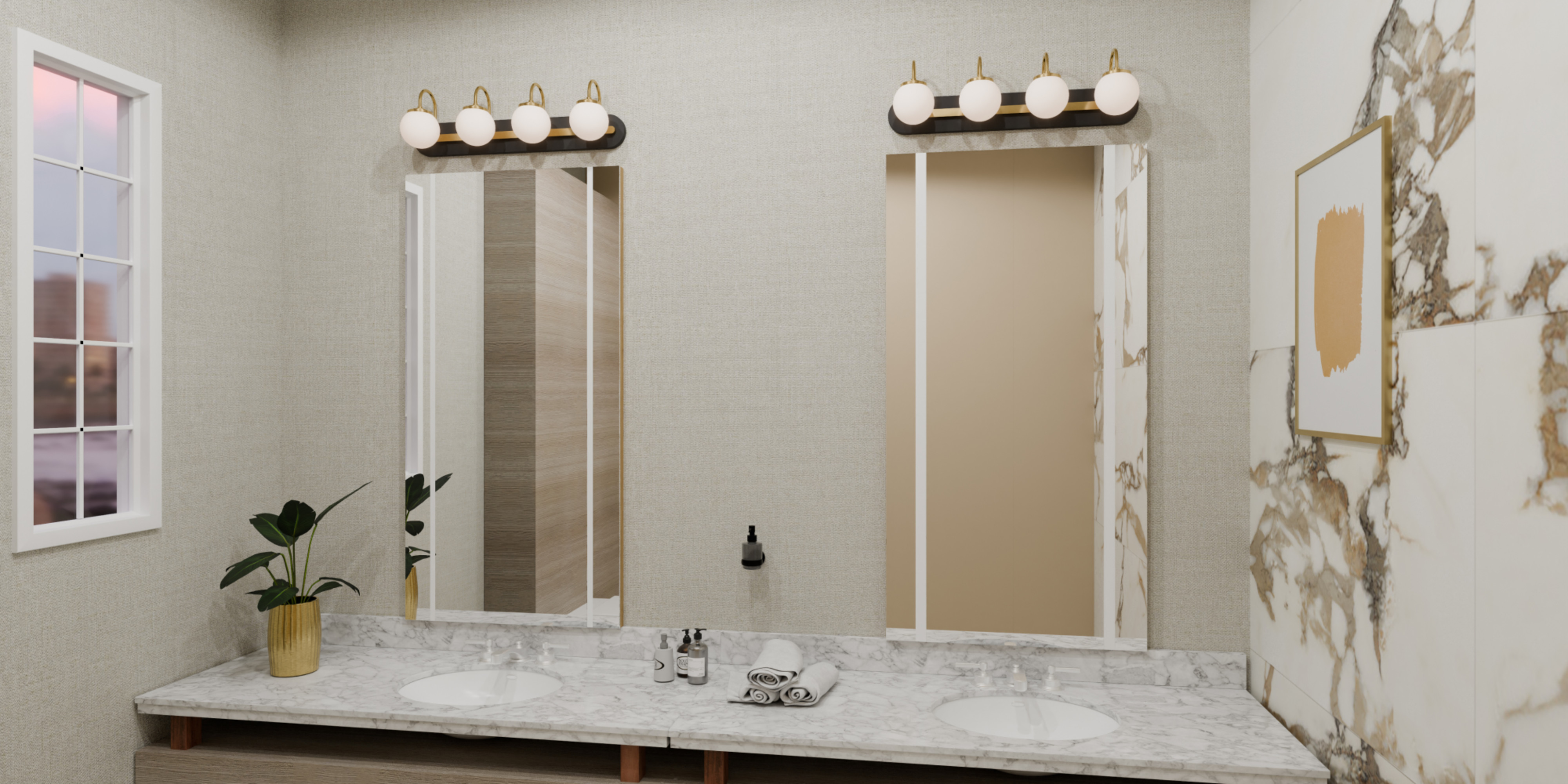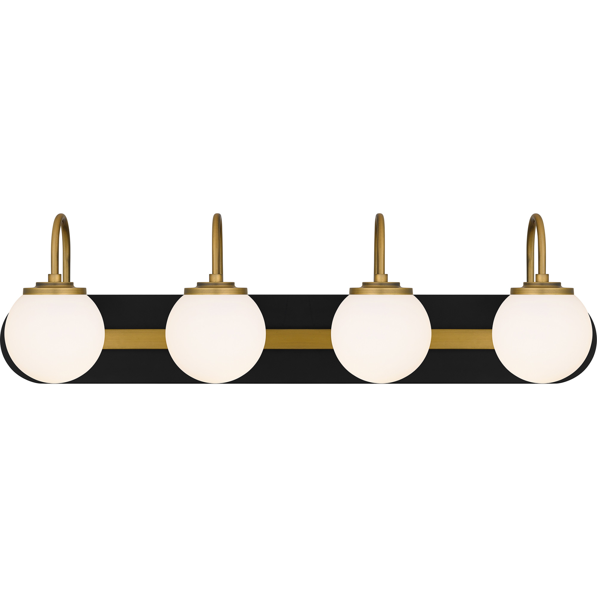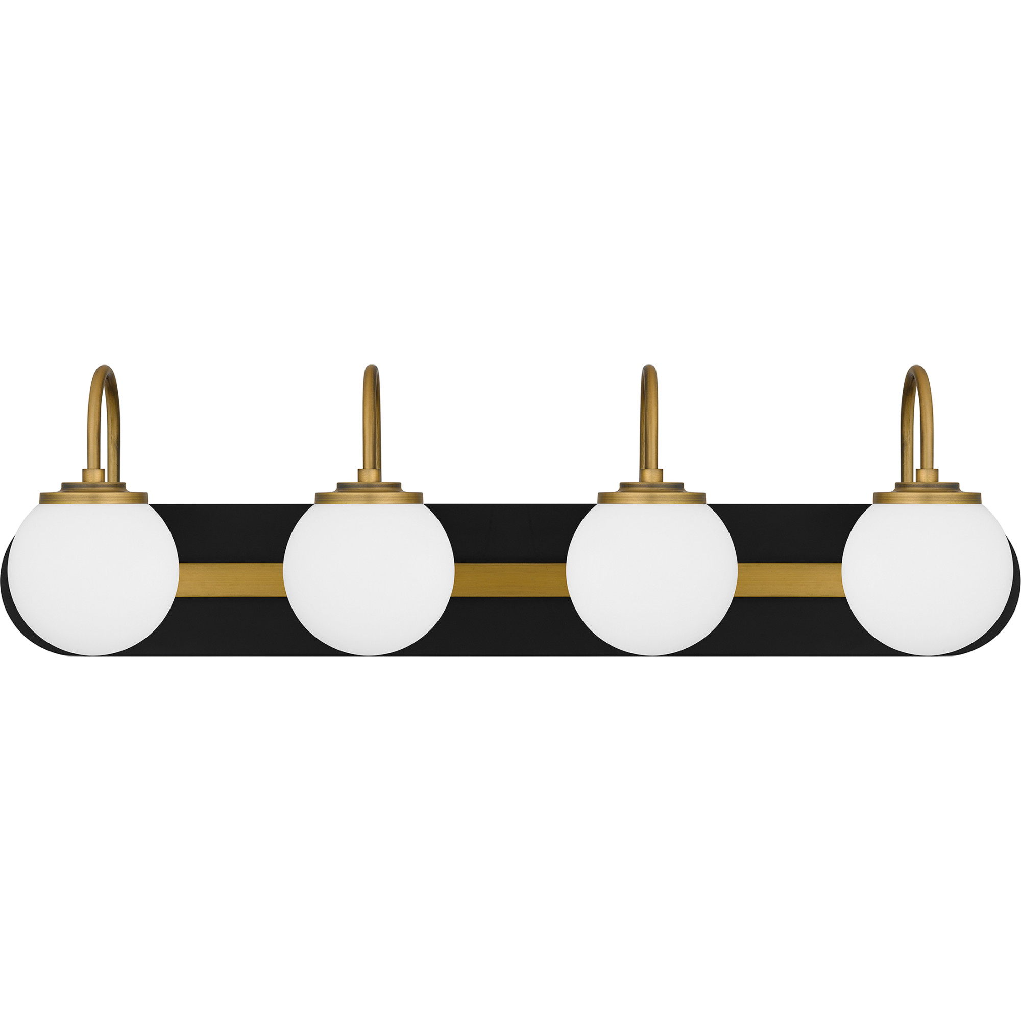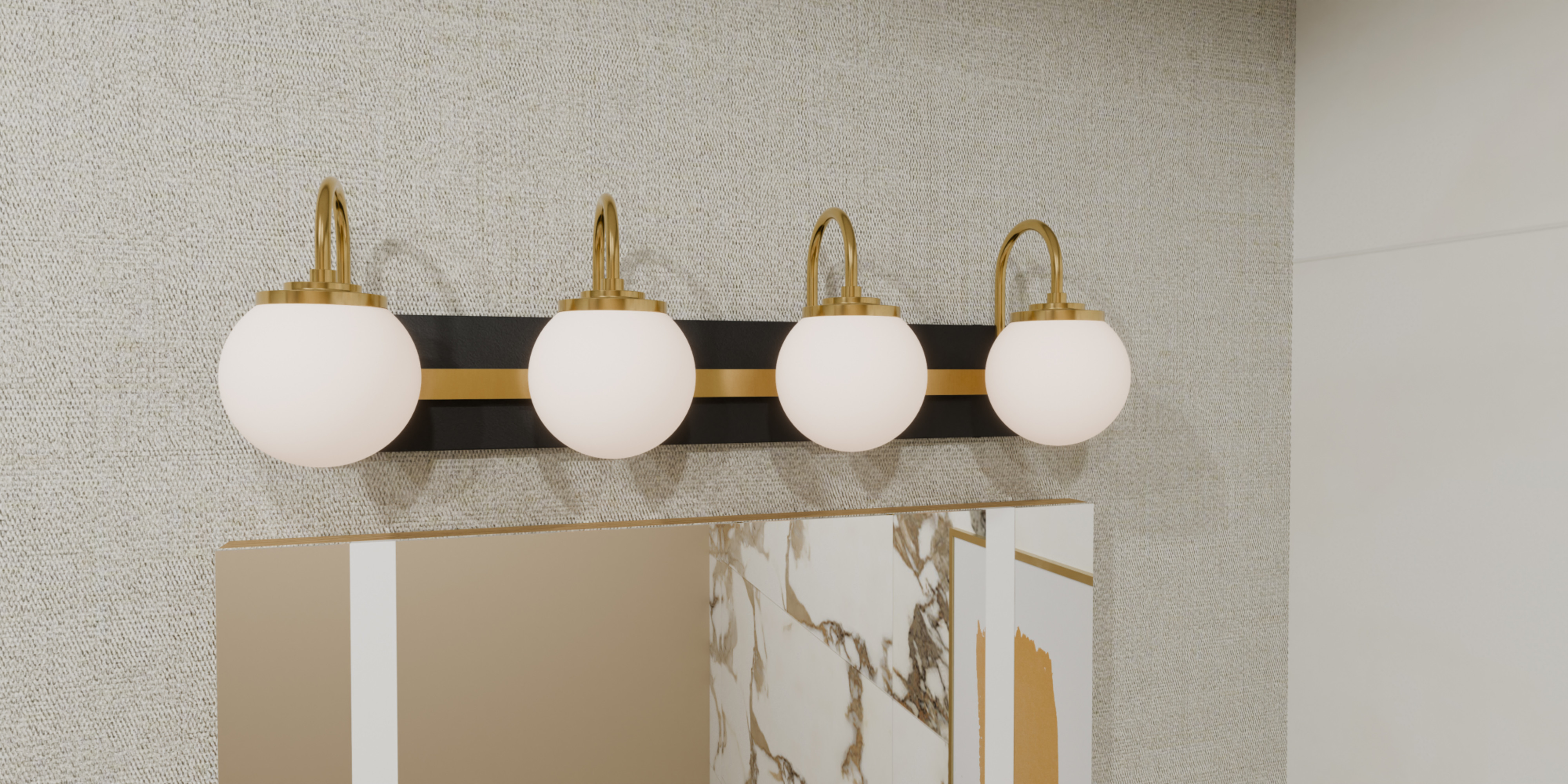 Item DescriptionMatte black and brushed gold accents make a beautiful, modern pairing in Desmond. Opal etched glass globes complement the bold bath light design, delivering the perfect amount of illumination. Desmond is available in a variety of sizes, allowing you to easily customize to your desired vanity setting.