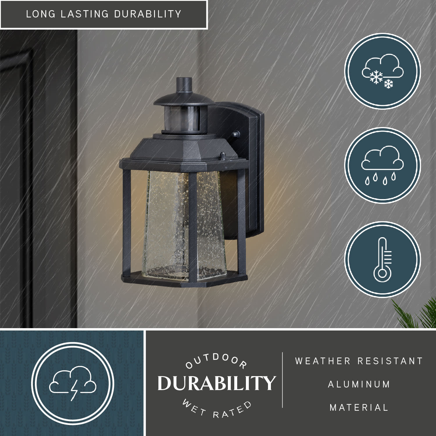 - Fixture automatically dims at night for ambient illumination through the night