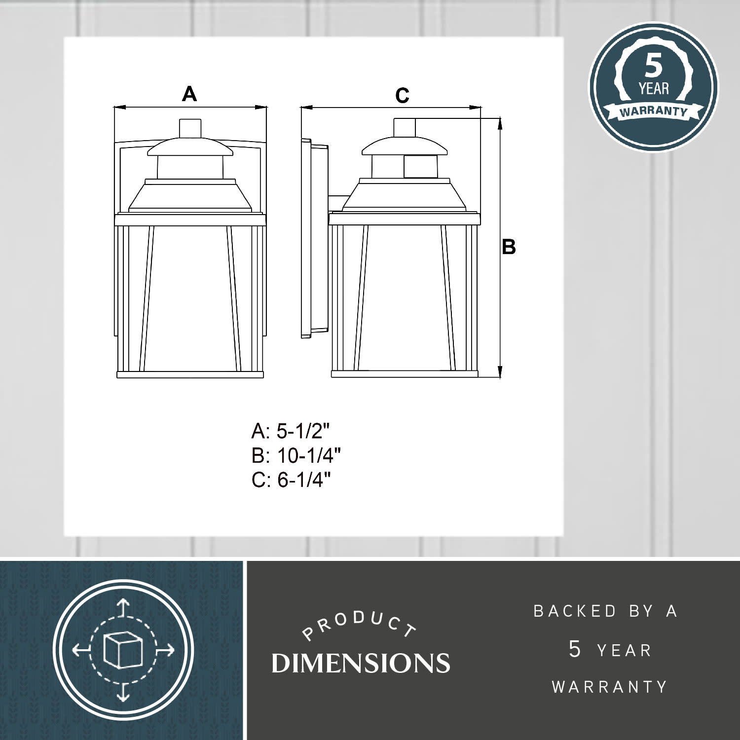 - Shade Height: 5-1/4"