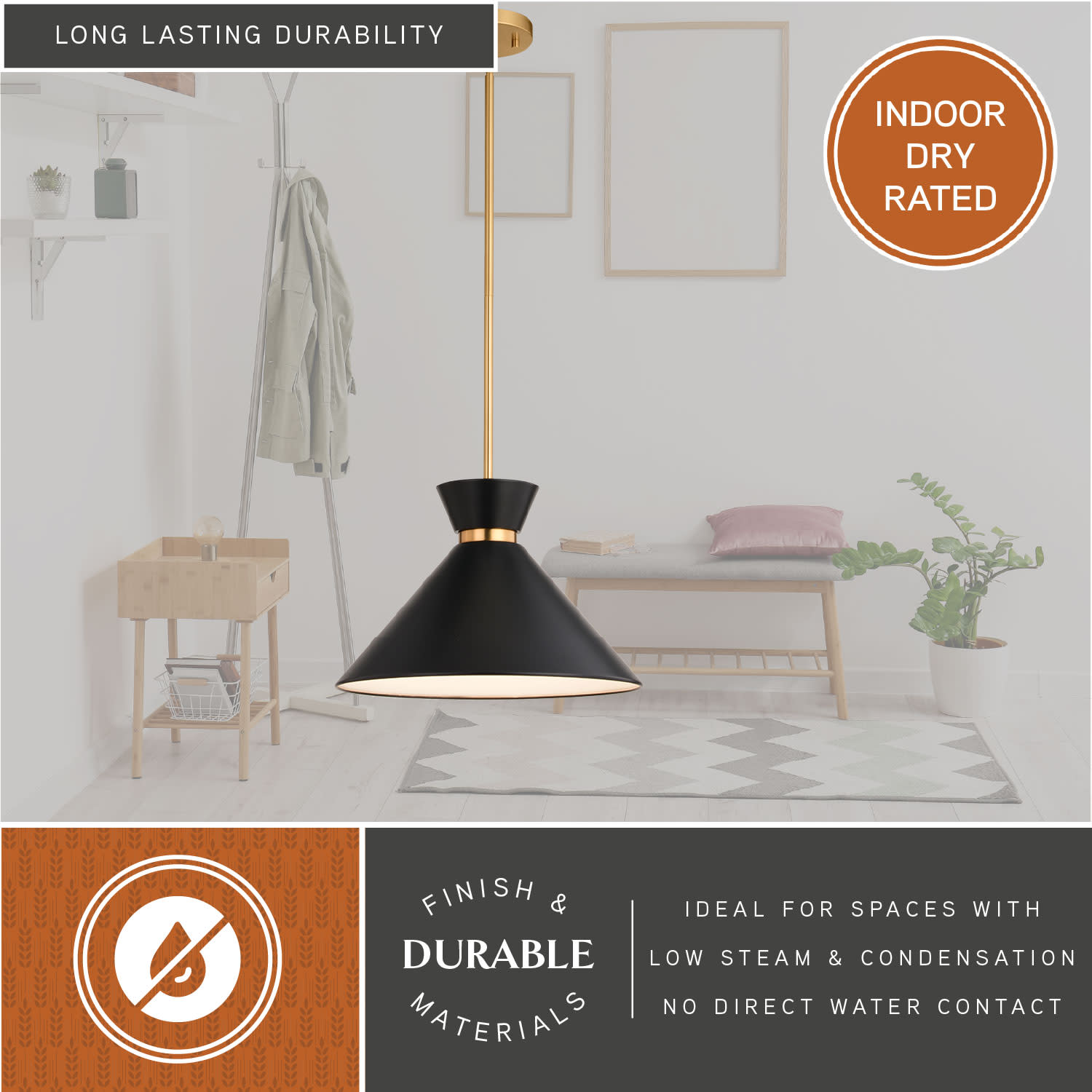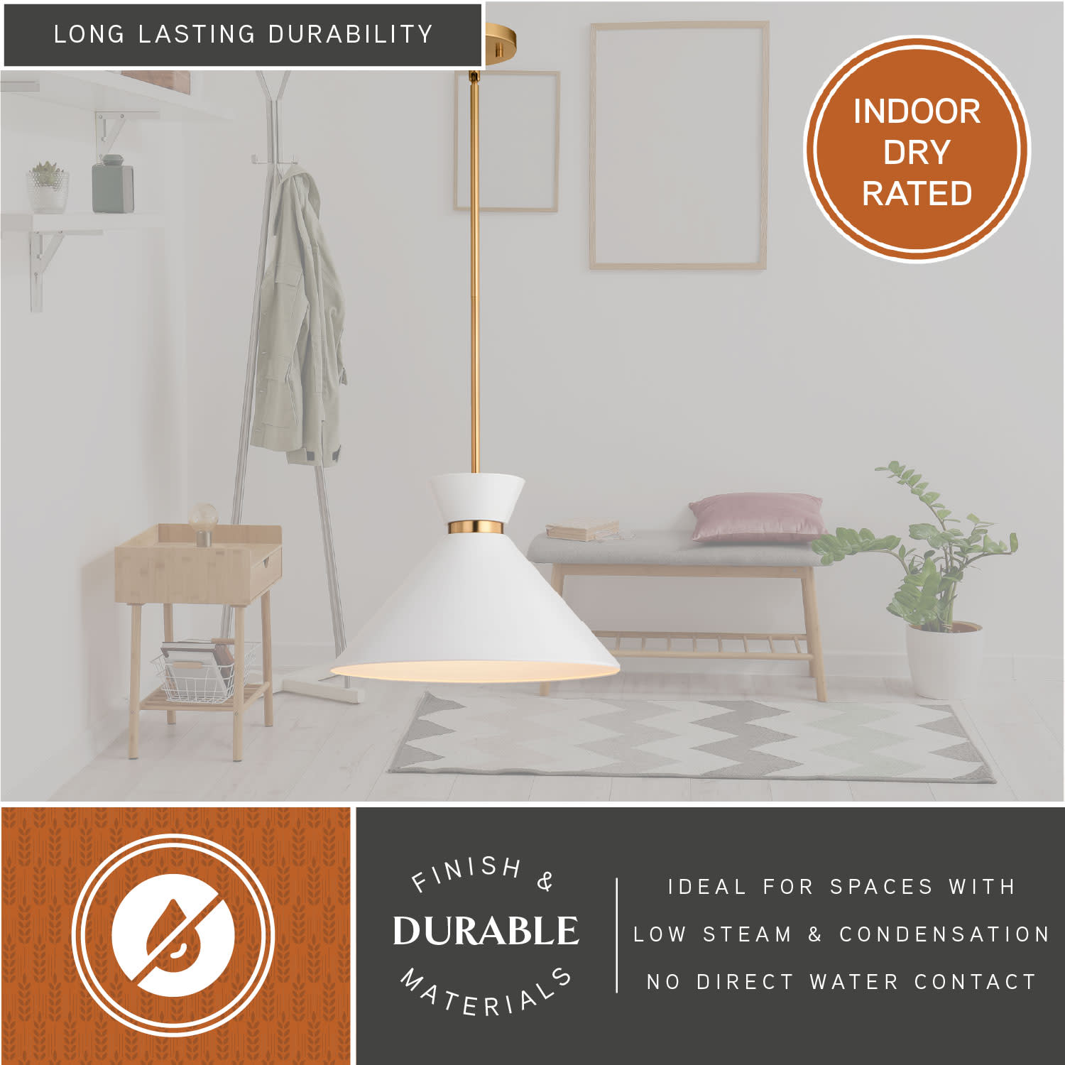 - Includes a 45" downrod