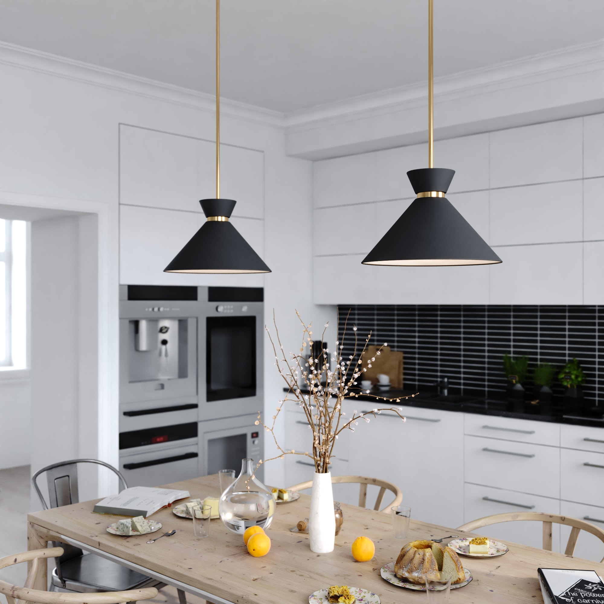 Item DescriptionThe Racine bowtie-shaped metal shade captures the glamor of mid-century modern style. Height is adjustable with the included down rods and is compatible with sloped ceilings. Sized right to install individually or in a pair over an island or table. Ideal to add a little flair in your kitchen, dining, or even bar area.