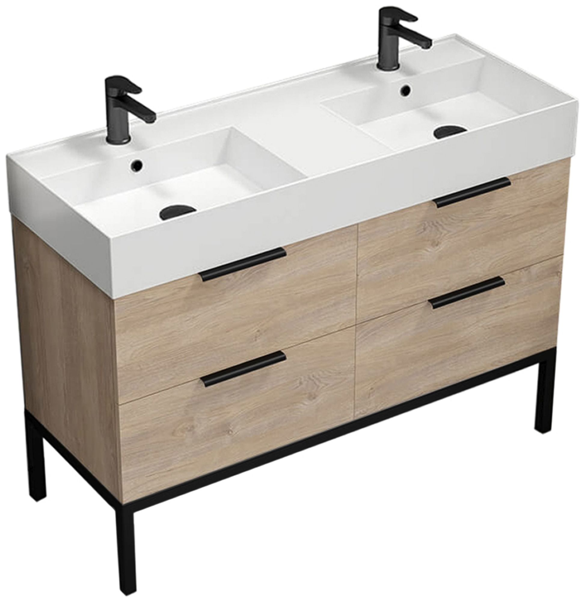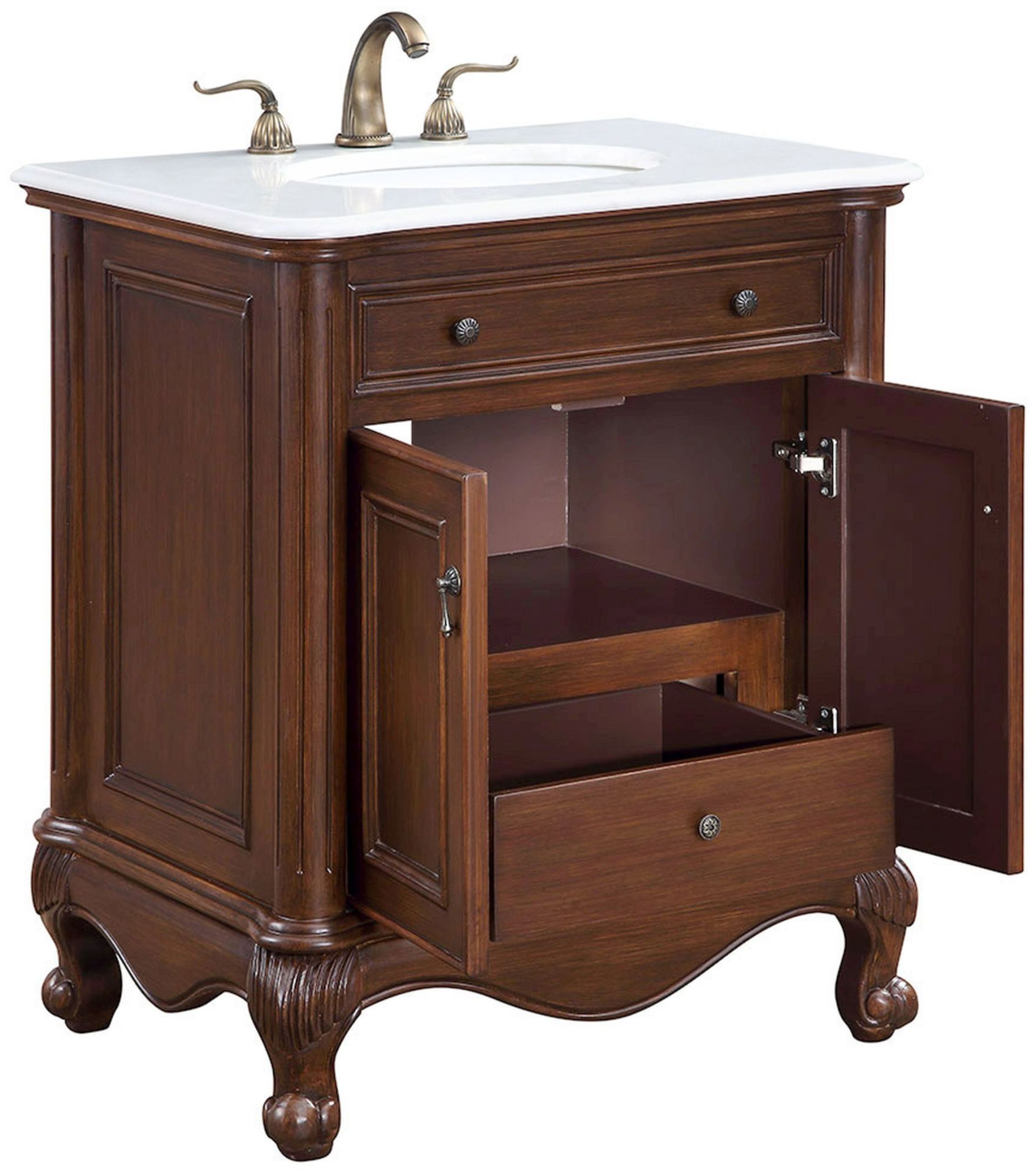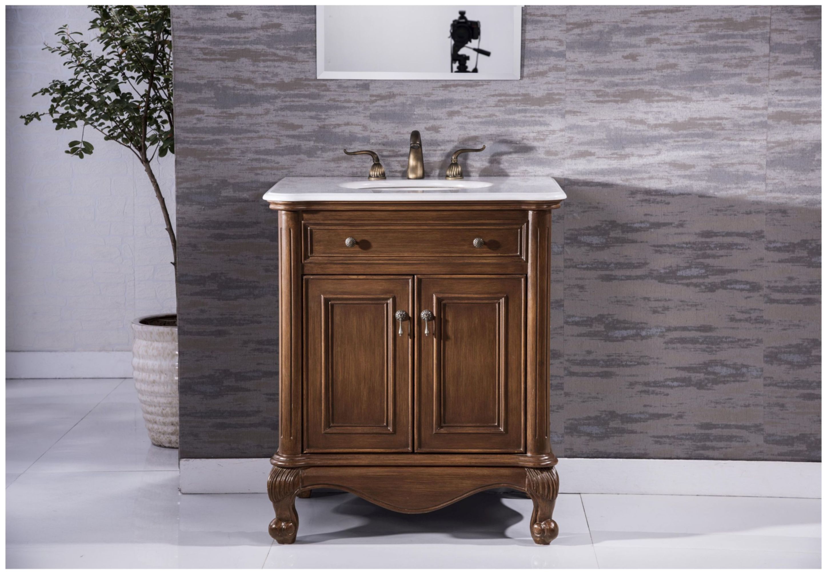- Solid wood and MDF vanity cabinet with 2 doors and 1 drawer