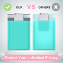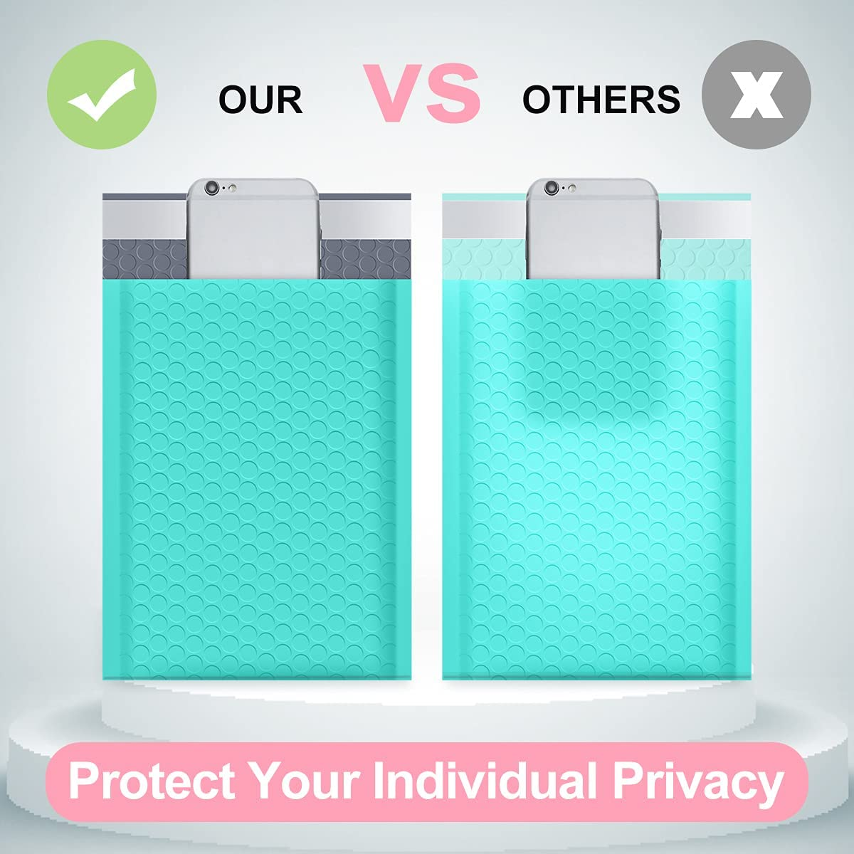 - Opaque Poly Bubble Mailers:The teal bubble mailers outer size is 6x10 inch, while the inner size is 6x9 inch. With full air bubbles, our bubble mailers can protect your value products from damage caused by external impacts. The inner lining is using gray film, even if there is strong light, the items in the bag cannot be seen, which can protect your privacy well