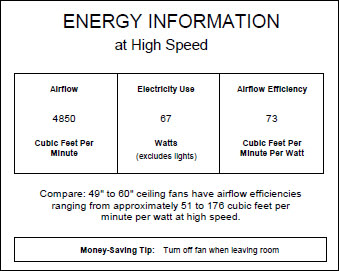 • Five Blades, 52" Blade Sweep