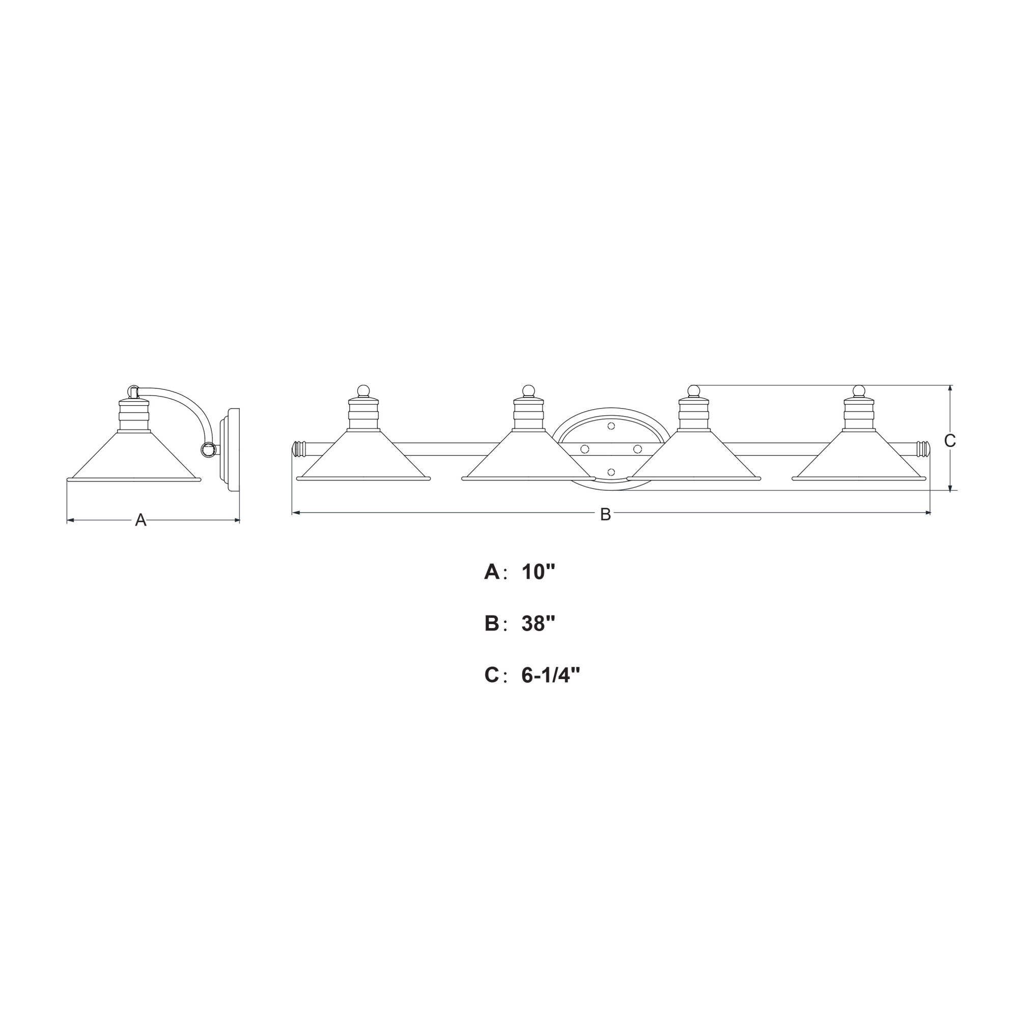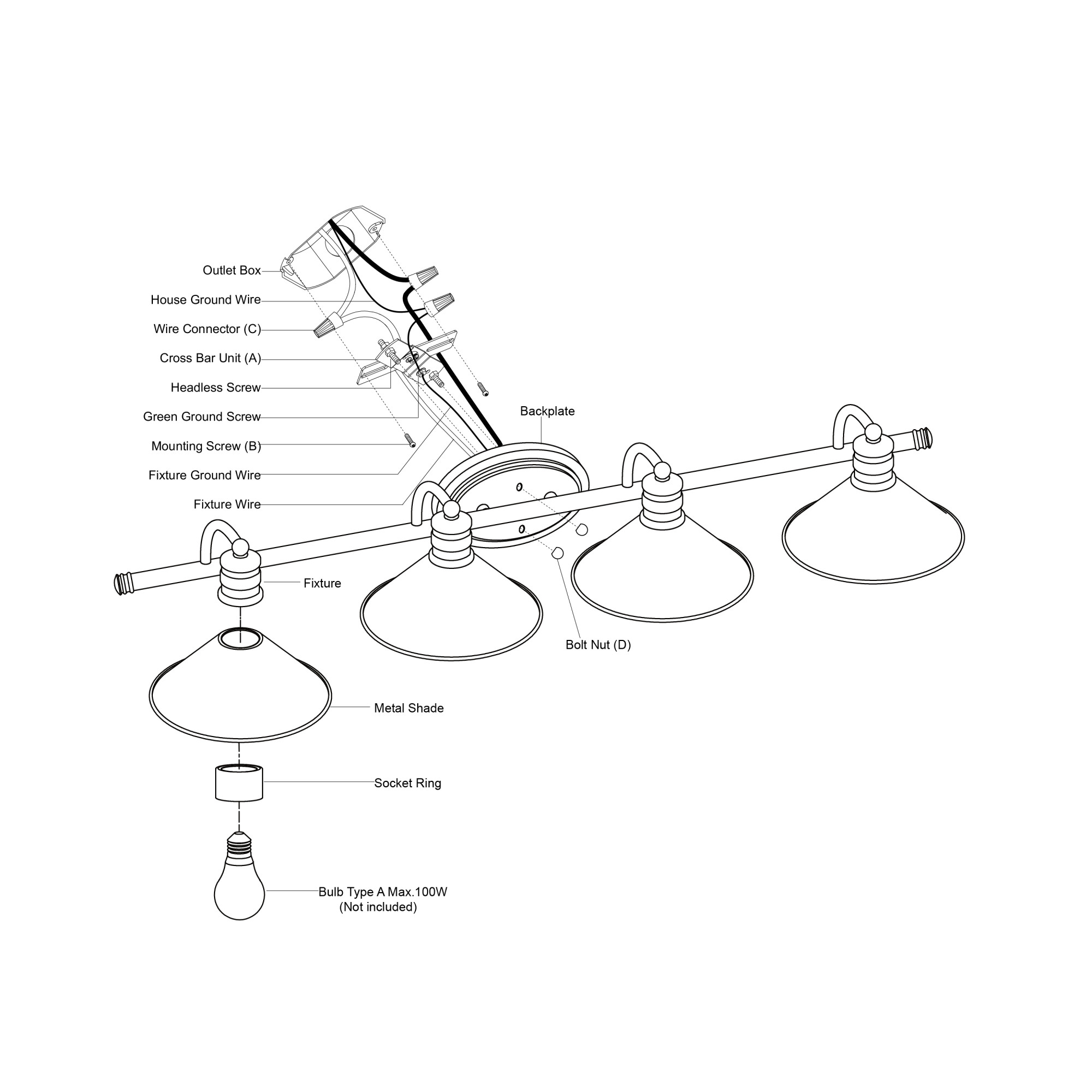 - (4) medium (E26) 100 watt bulbs required (not included)