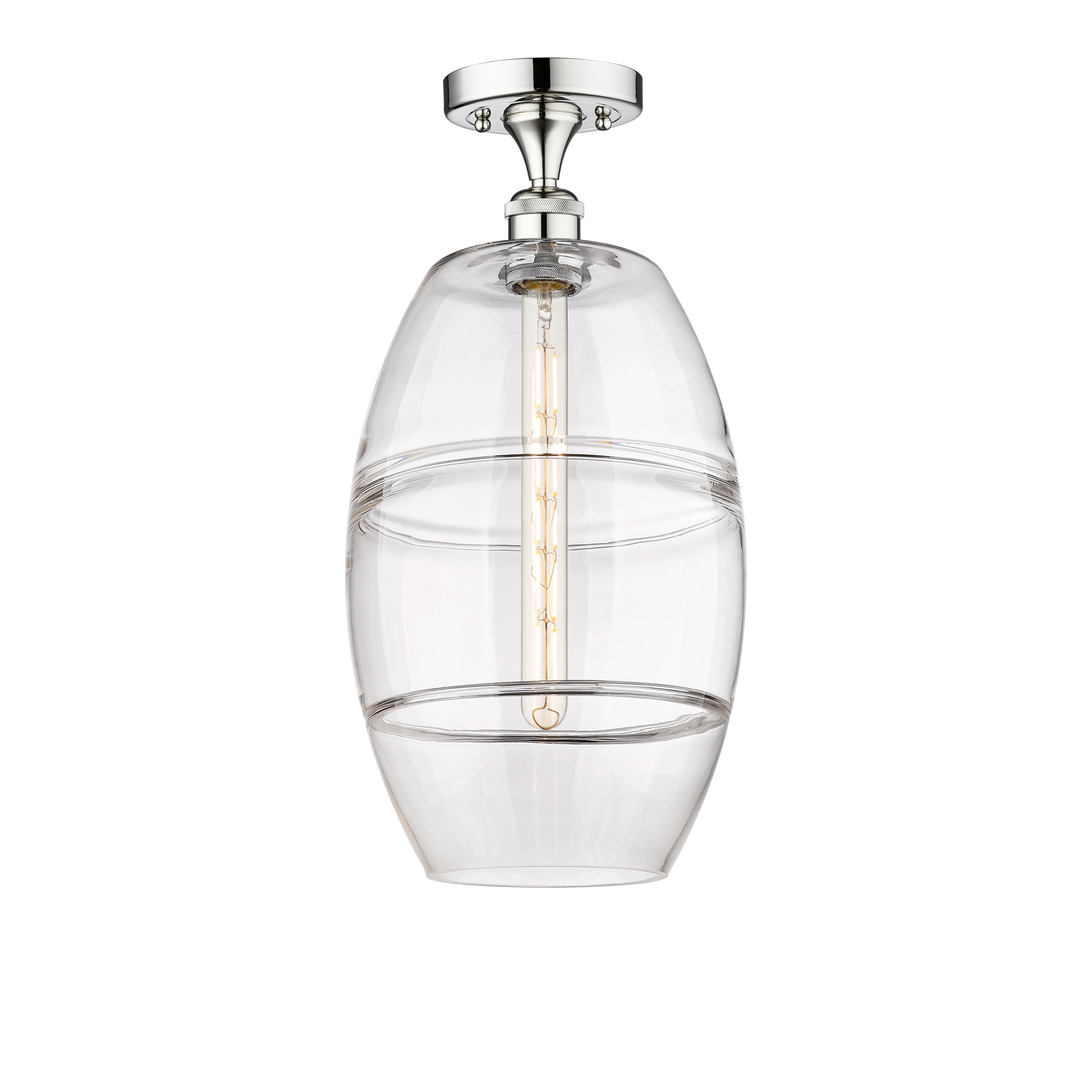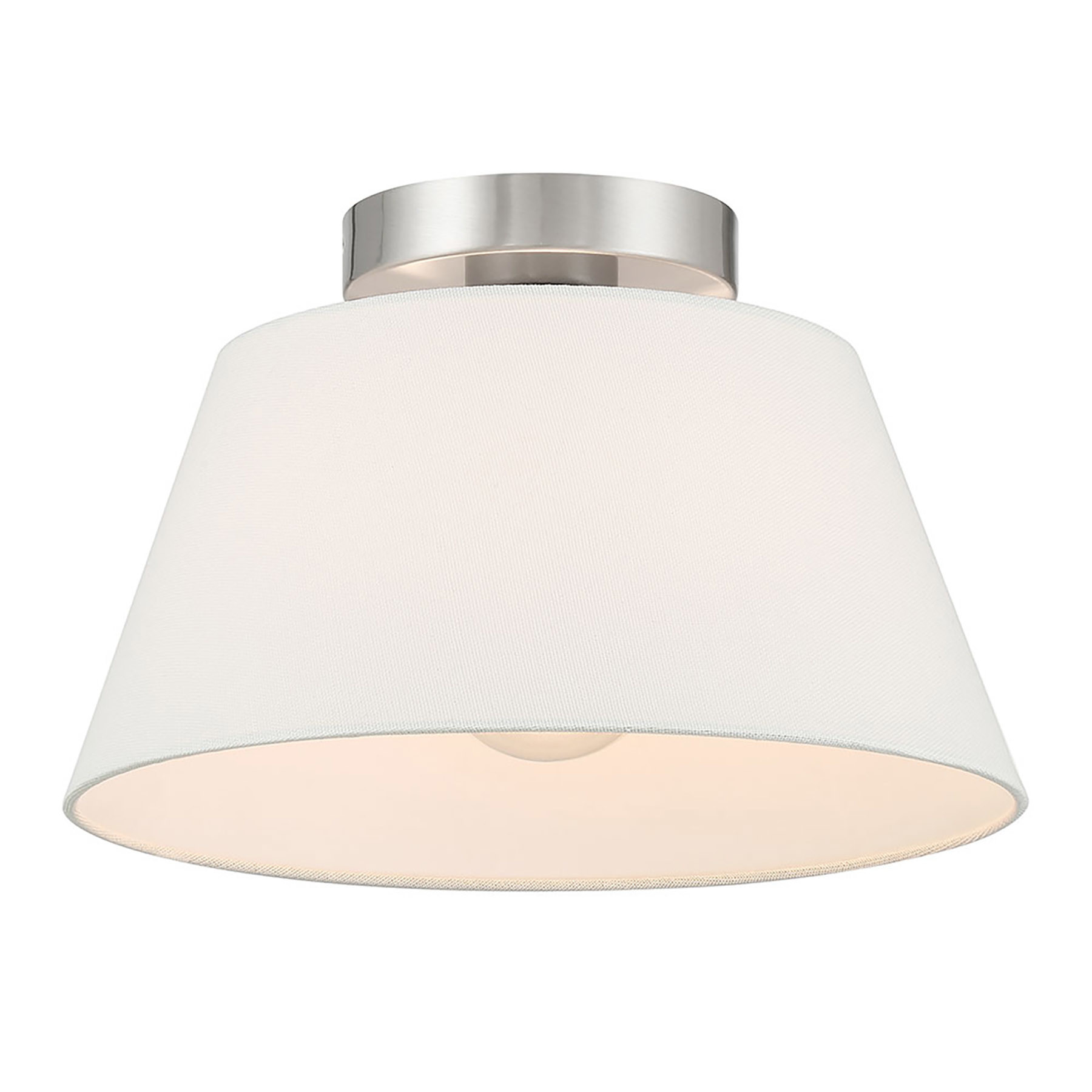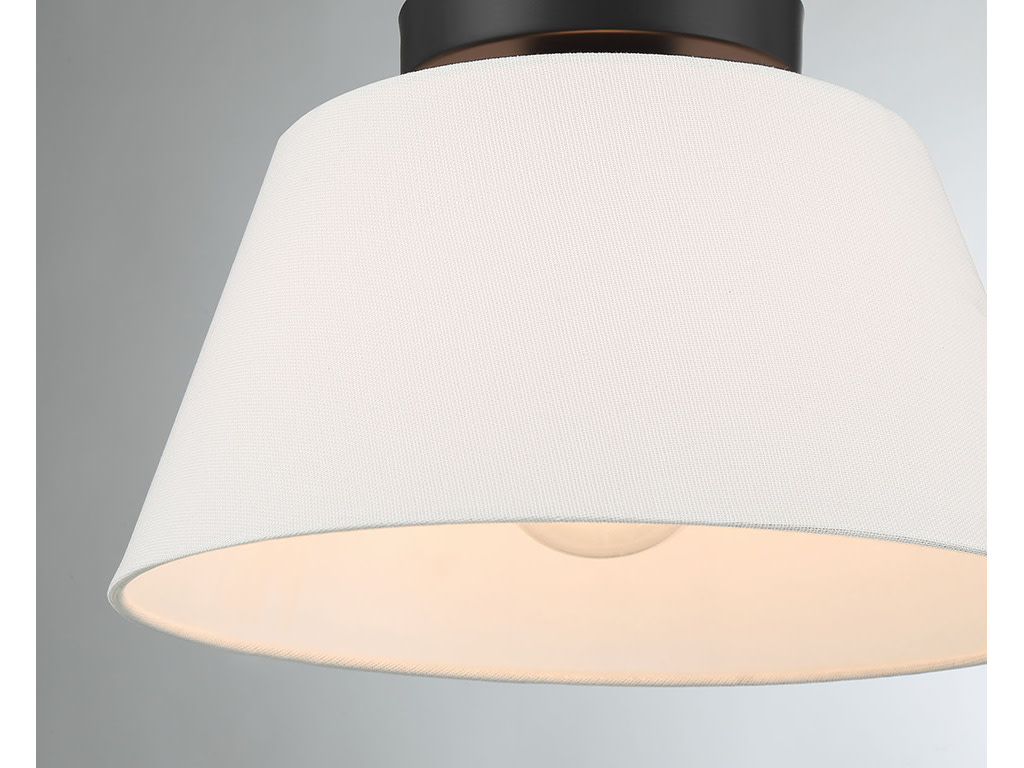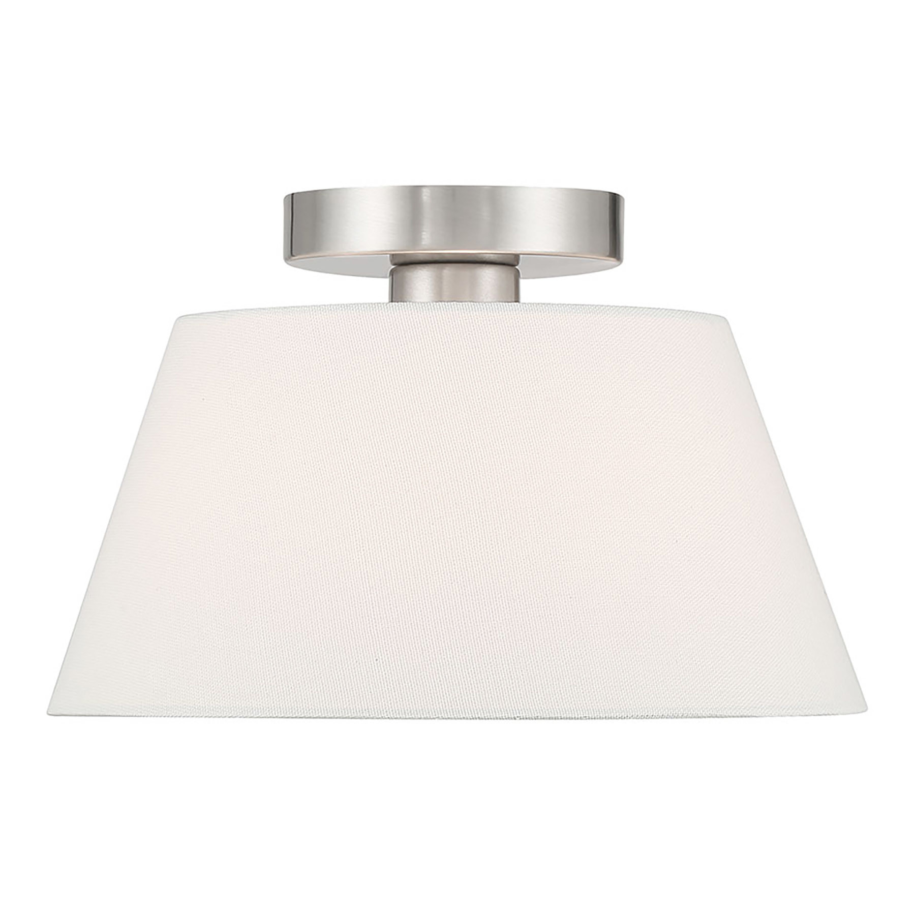Item DescriptionUse this 3-light ceiling semi-flush mount to freshen up any room. The elegant white linen shade provides a crisp and classic look that works beautifully with any decor and style. The finish is wonderfully versatile. 7.5" height, 12" width.