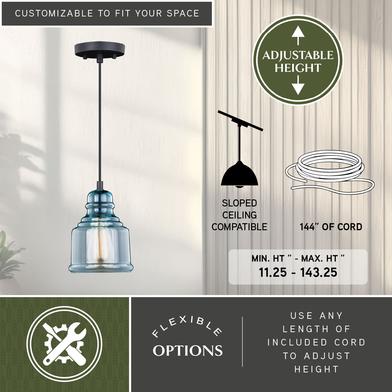 - Adjustable cord for a personalized hanging height