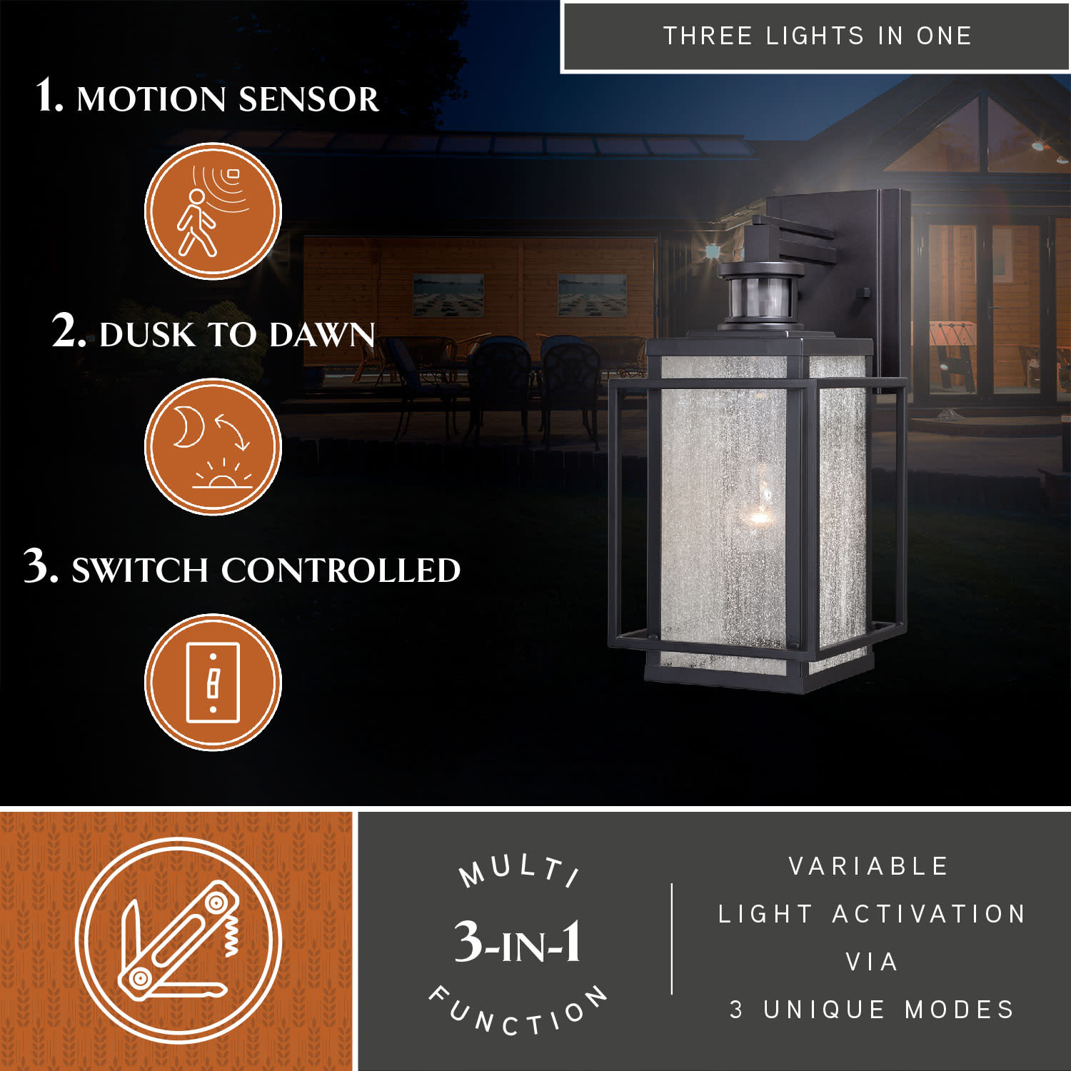 Item DescriptionDualux® multi-level outdoor lighting is designed to fit your lifestyle and enhance the beauty, safety, and usability of your home's exterior areas. You get convenience, security, and efficiency with Dualux® outdoor light fixtures.