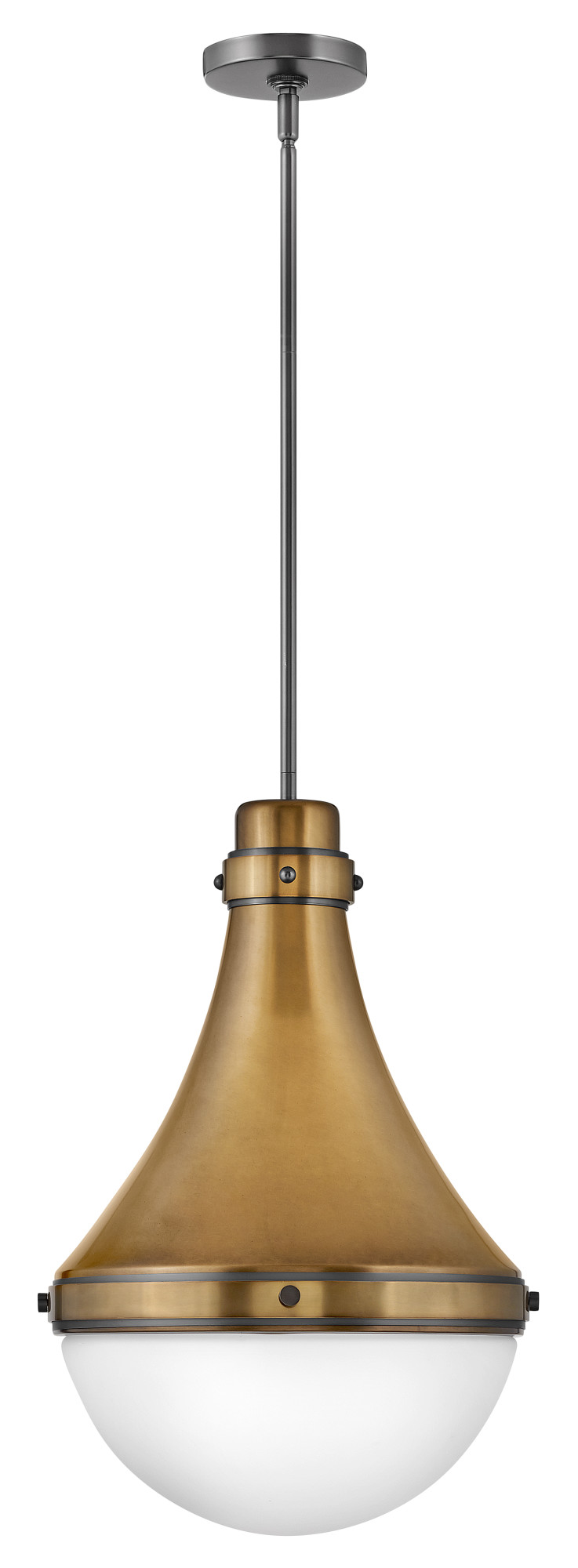 Item DescriptionOliver's eye-catching teardrop shape features a sleek spun metal shade and etched glass shade beneath. Contrasting bands and knobs add interest and reinforce its modern-meets-traditional style. Oliver is available in a robust lineup of finish combinations.