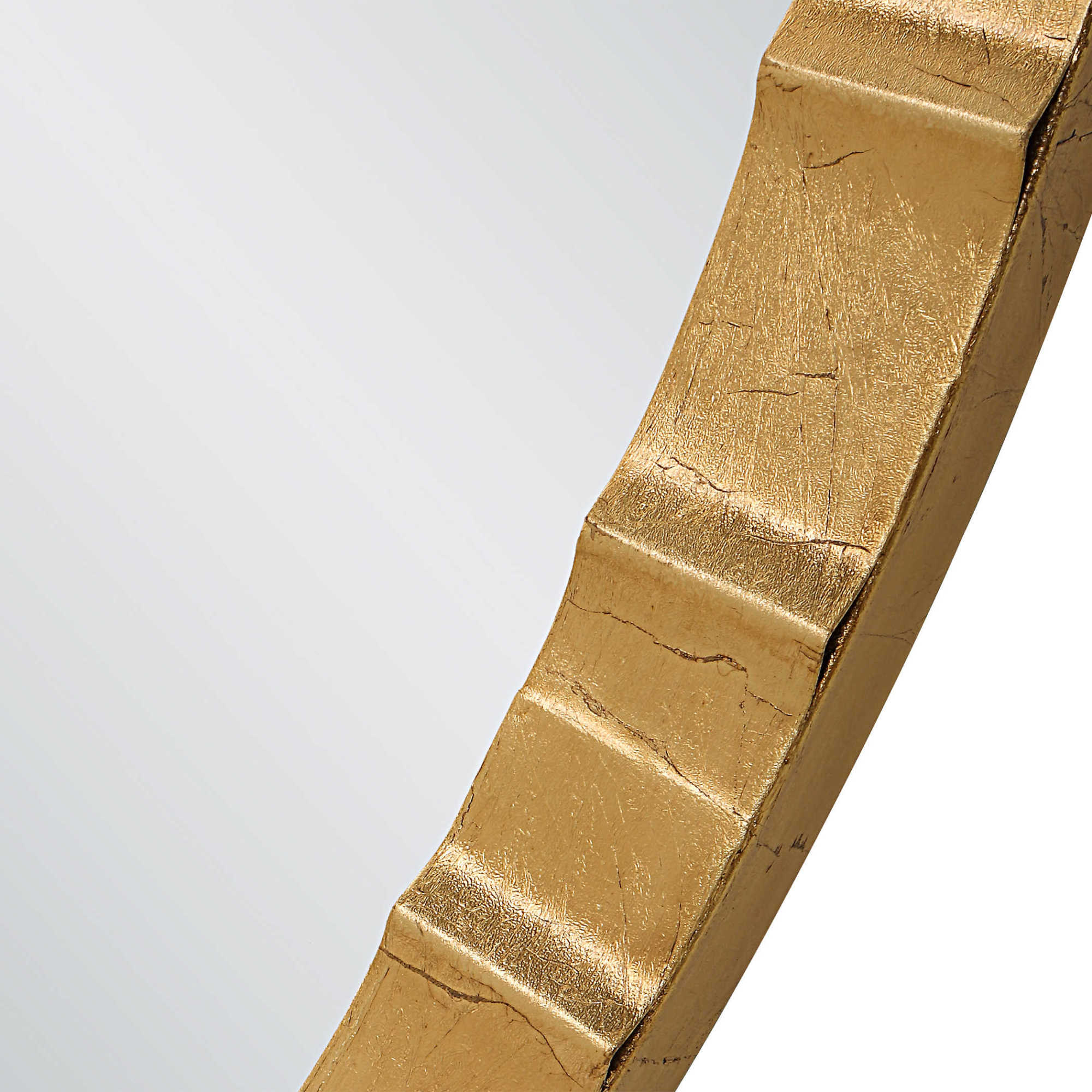 Item DescriptionConstructed from hand forged iron with noticeable raised ridges for a touch of industrial influence, finished in a metallic gold leaf finish with light distressing.