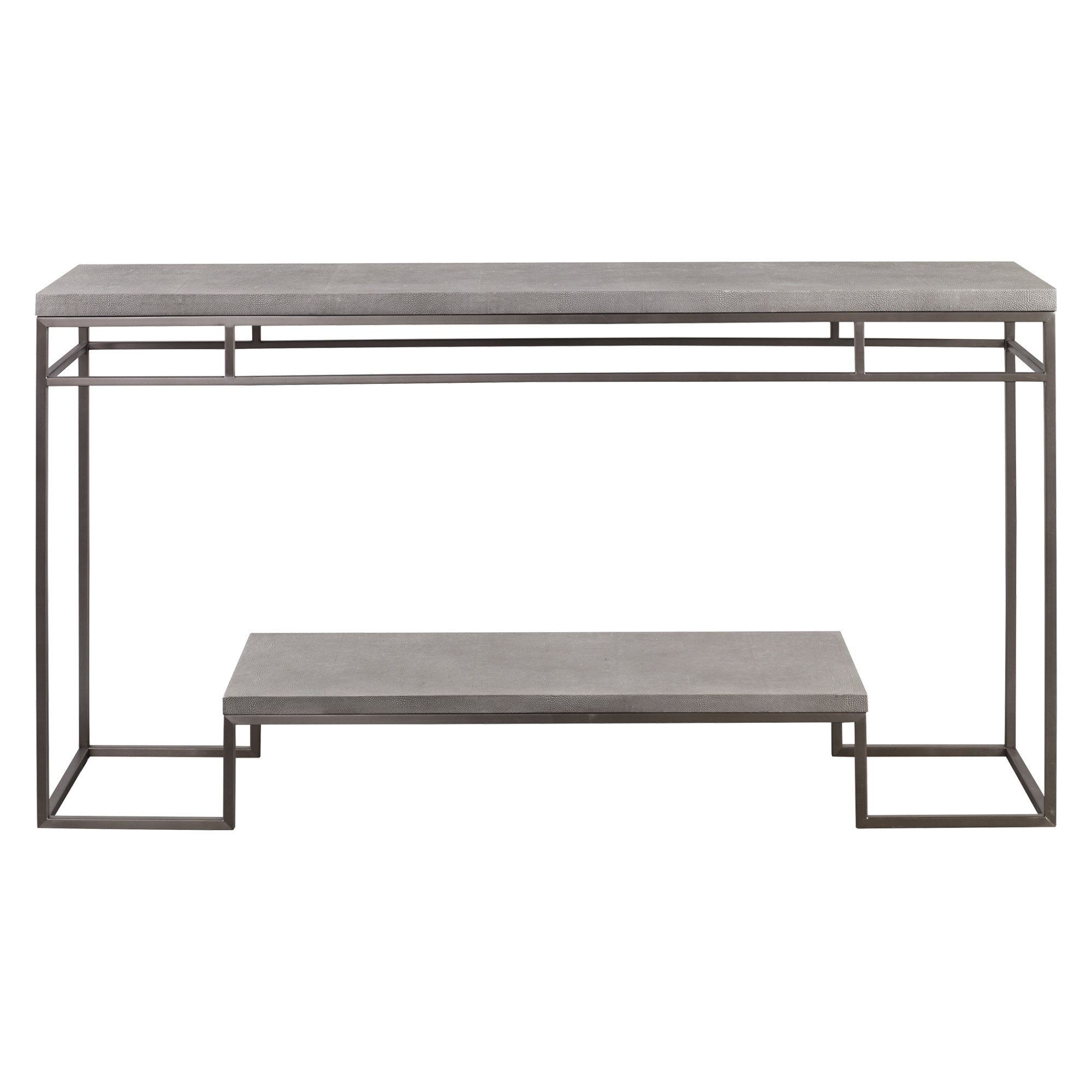 - This console features faux shagreen embossed surfaces in a natural light gray wash