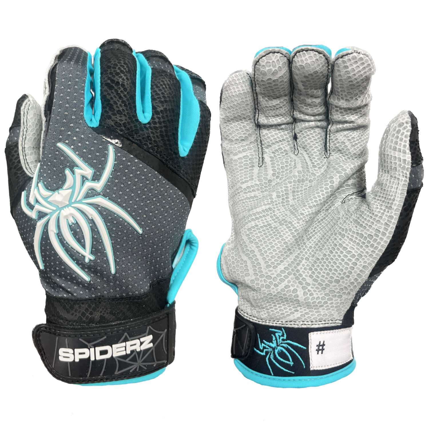 The all new redesigned Spiderz PRO batting gloves feature super premium, thin, textured cabretta sheepskin leather palms and a triple reinforced wrist strap for a snug and secure fit.