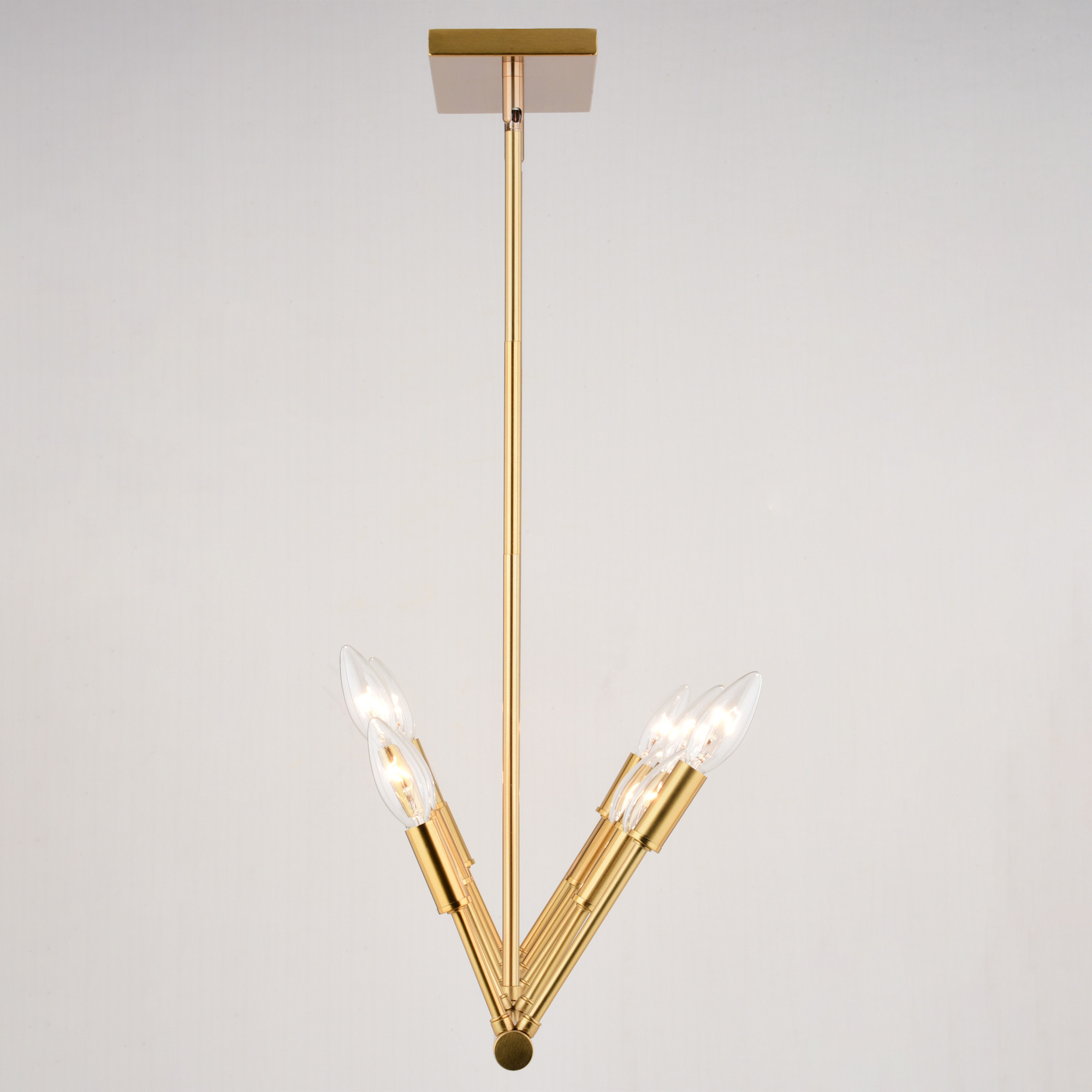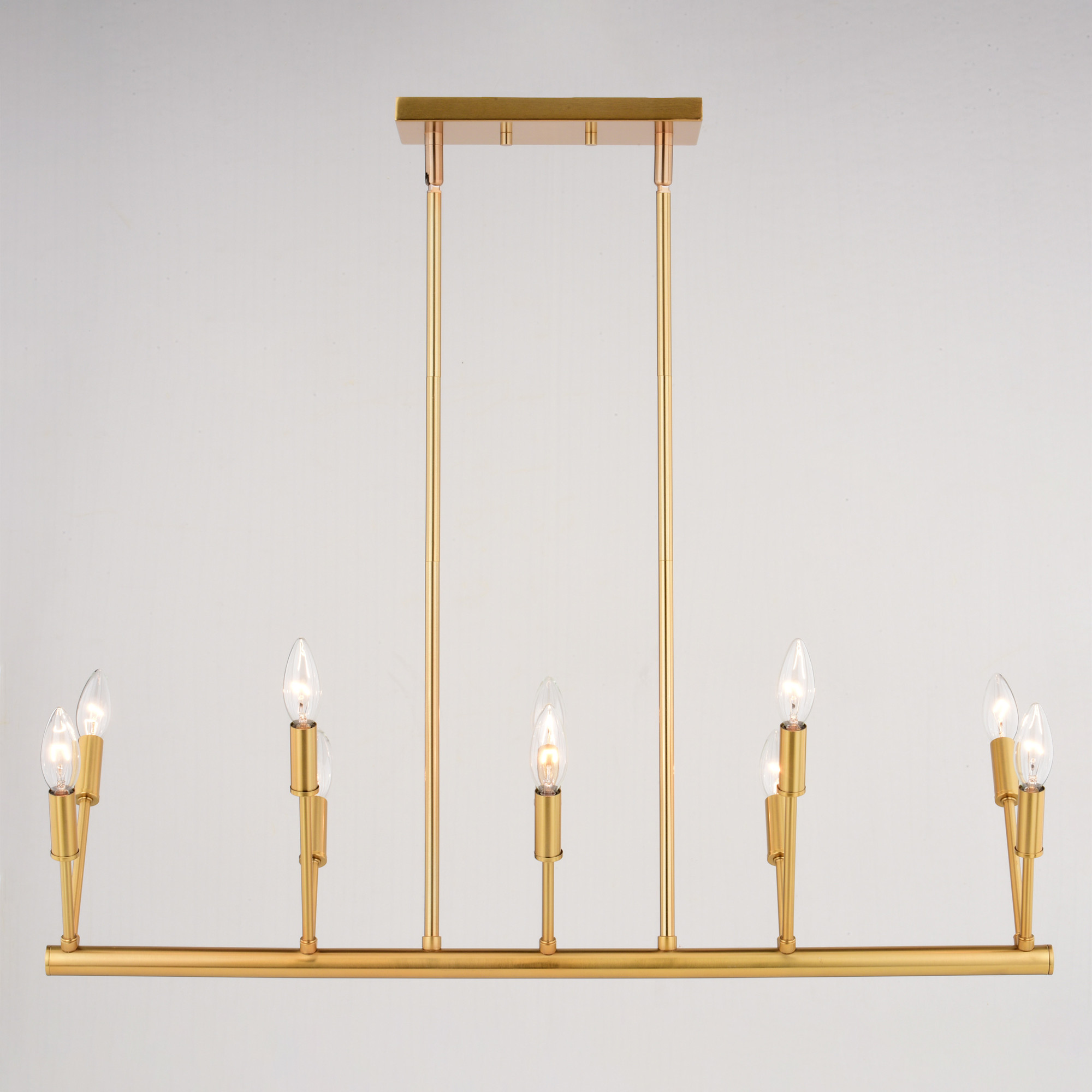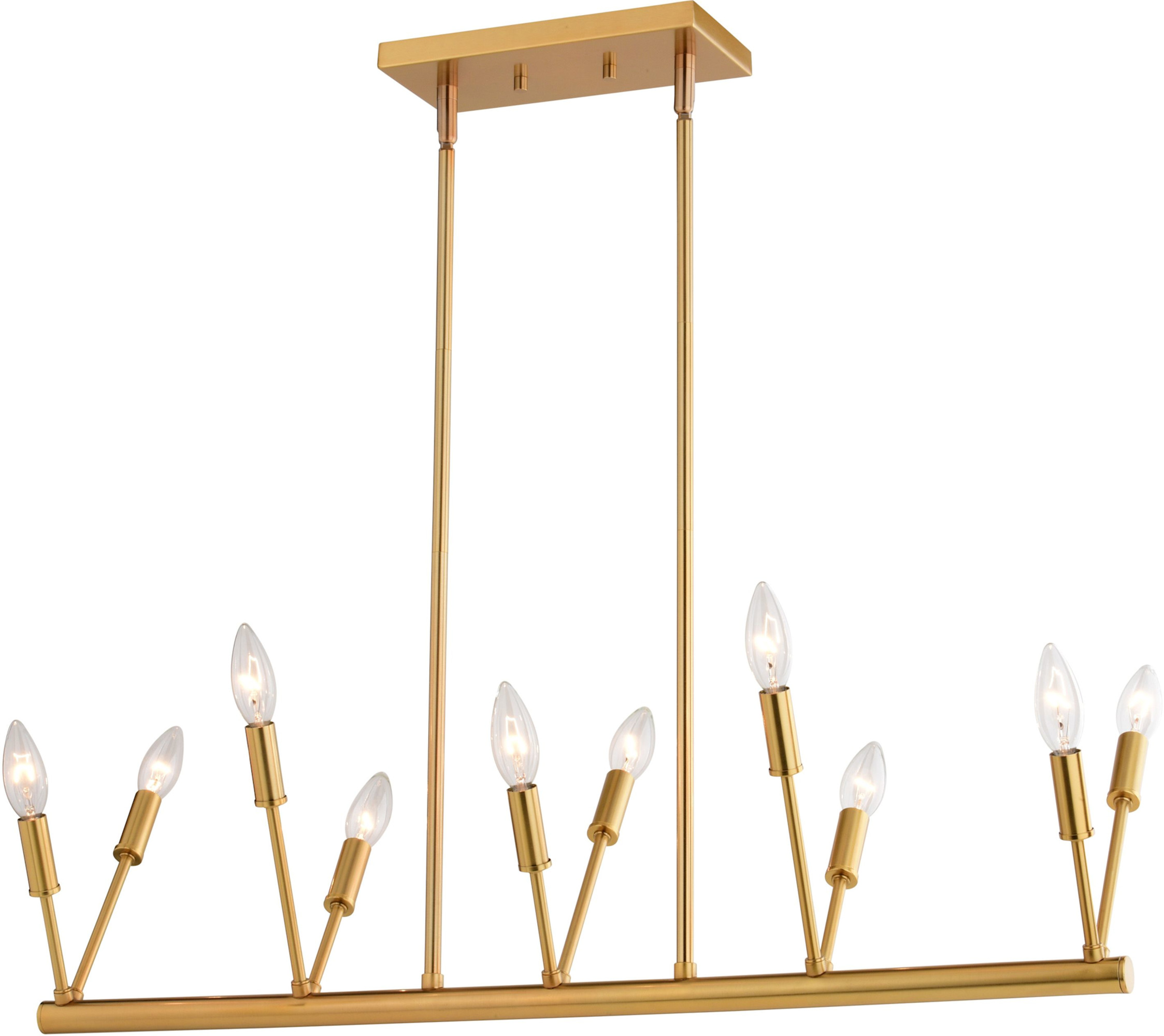 Item DescriptionAdorn your kitchen island or dining area with the minimalist candelabra look of the Warwick linear pendant. Its natural finish and unique V shape lamping create a striking and sophisticated look. Perfect for illuminating your culinary entertaining.