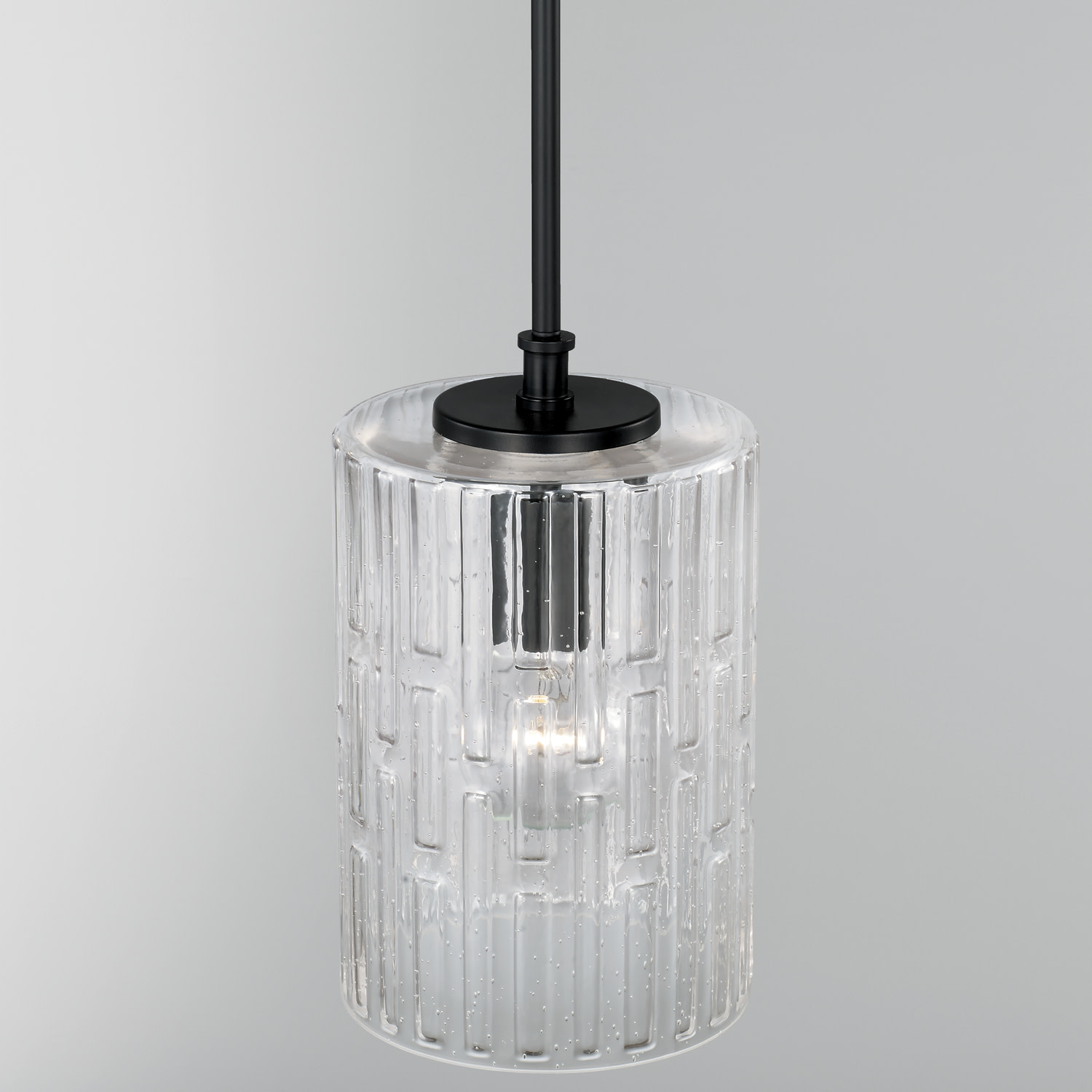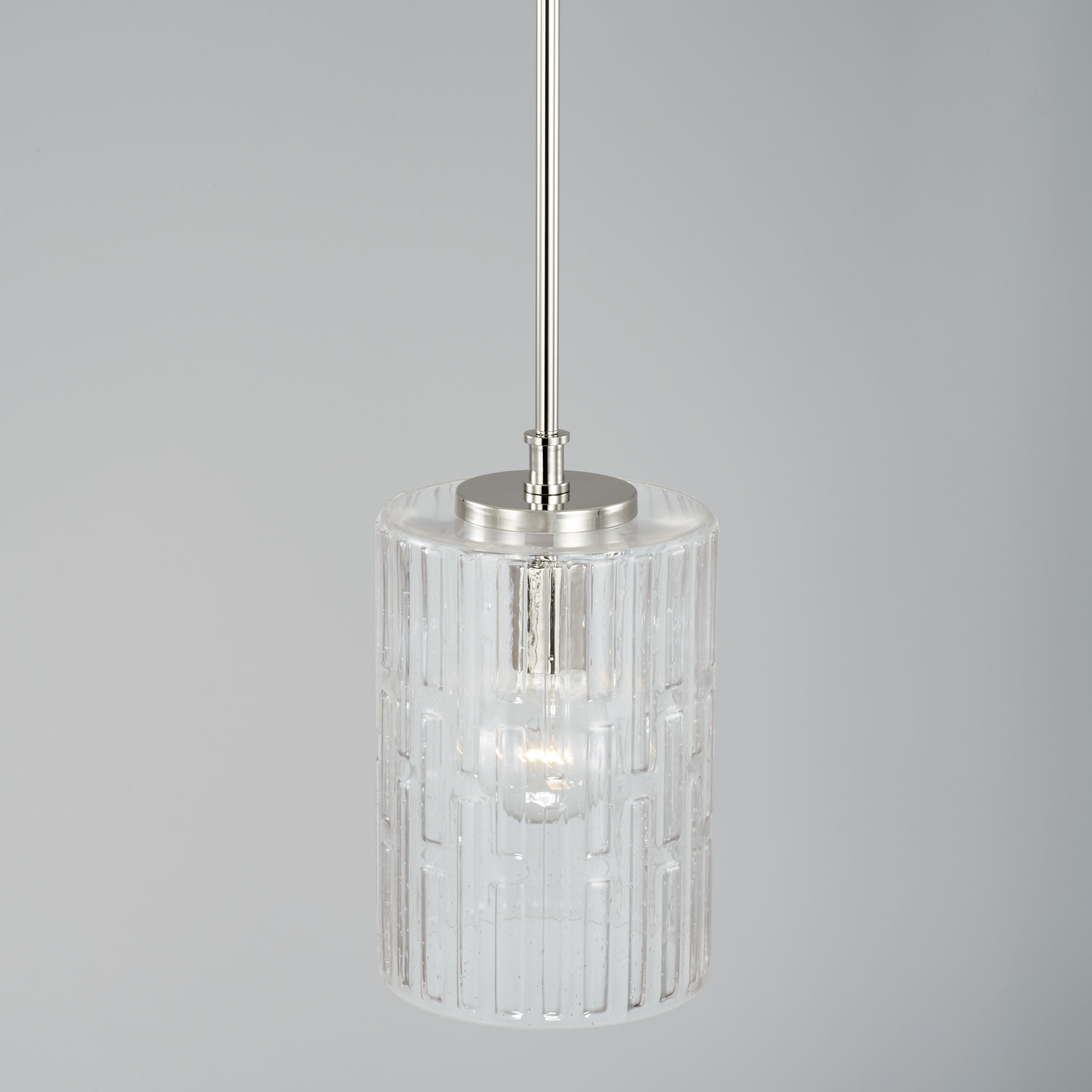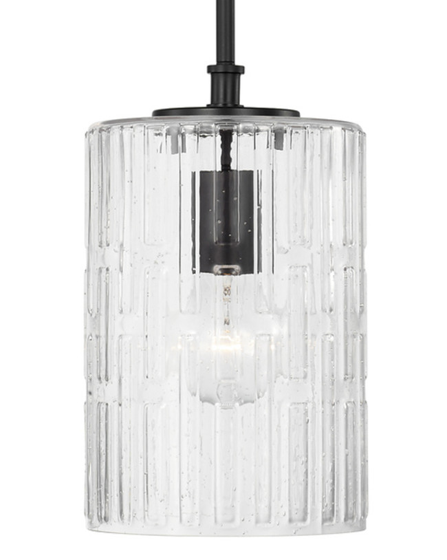 Item DescriptionCreate a simple and striking statement with the Emerson 1-light pendant. This fixture features elongated seeded glass with an embossed geometric pattern sparkles on a clean and classic frame.