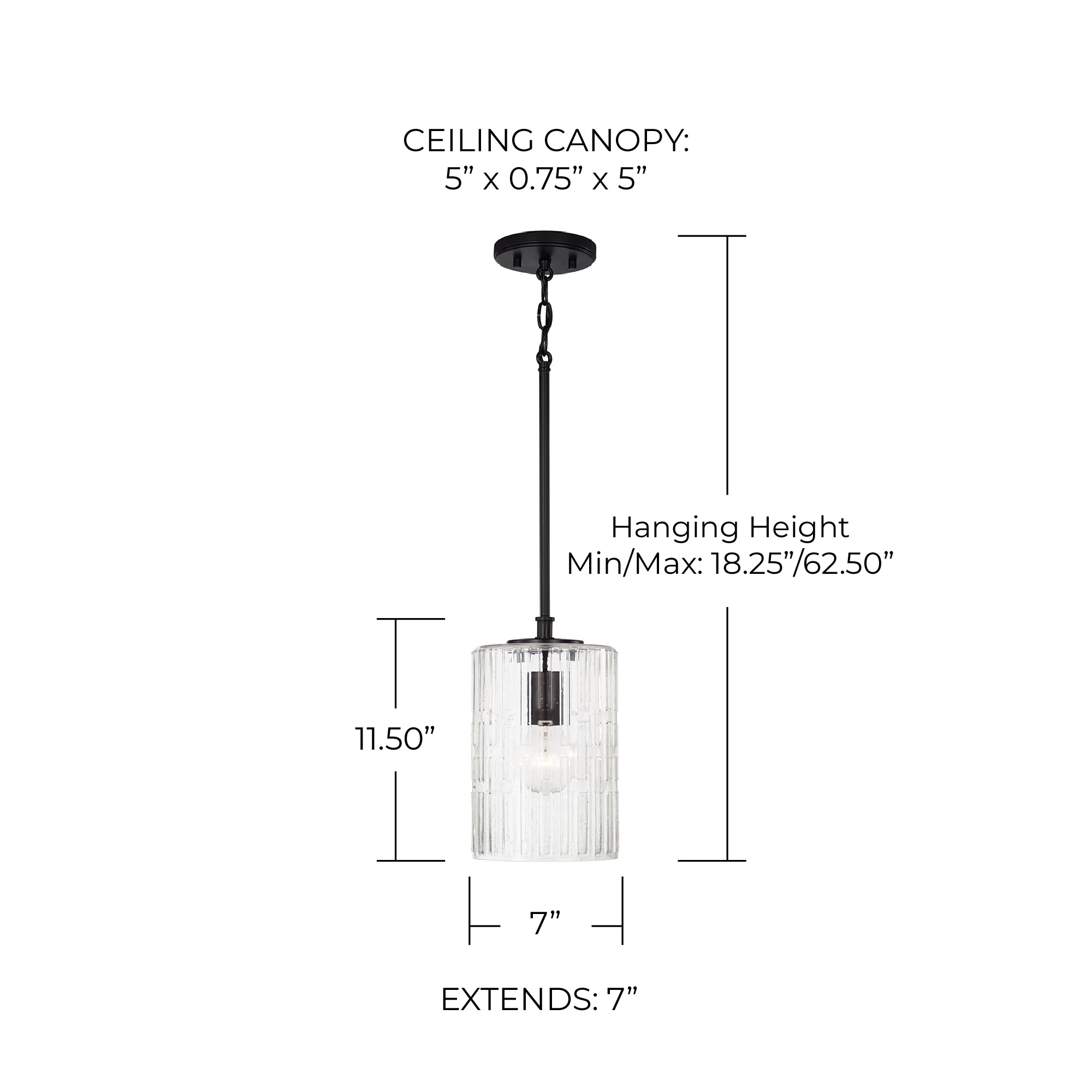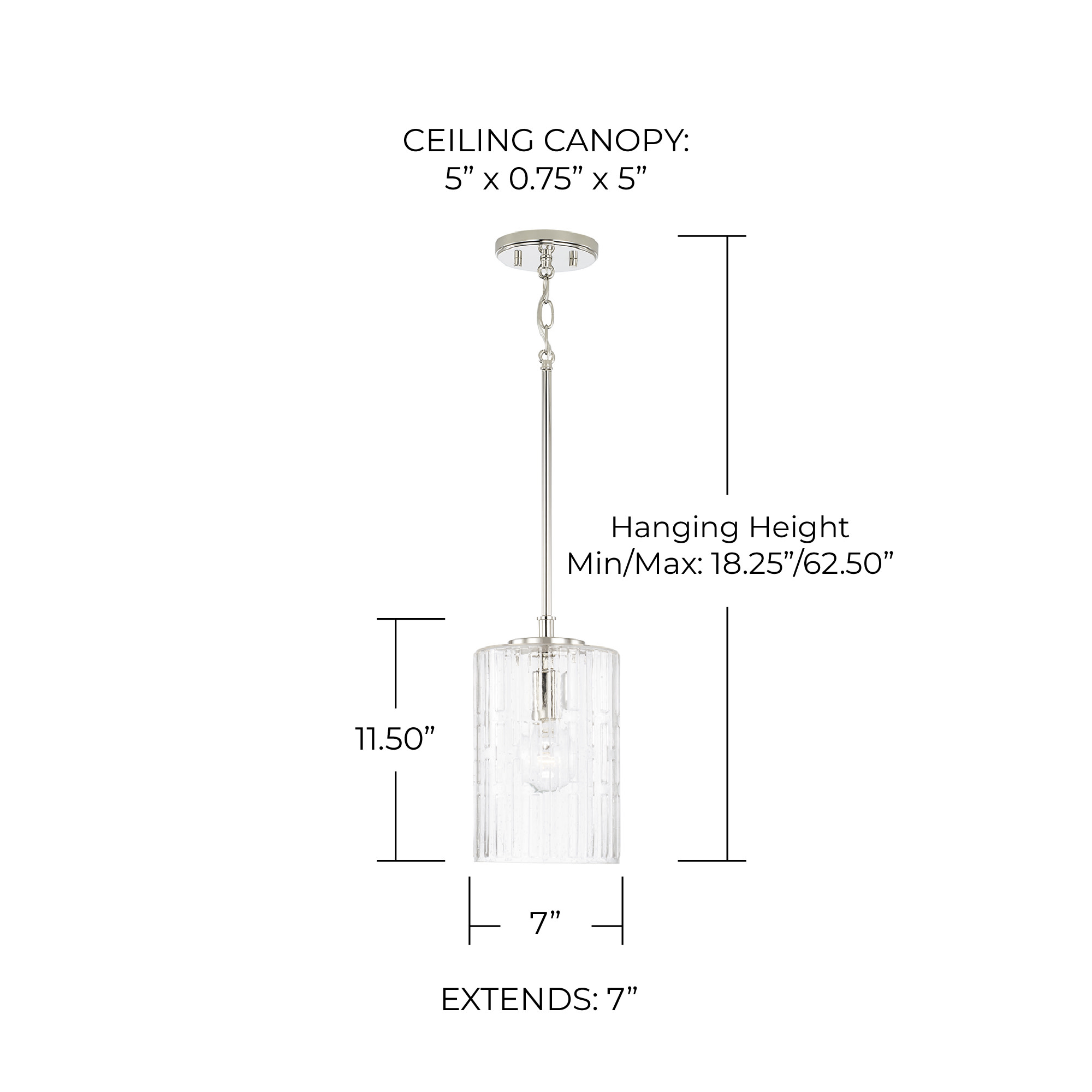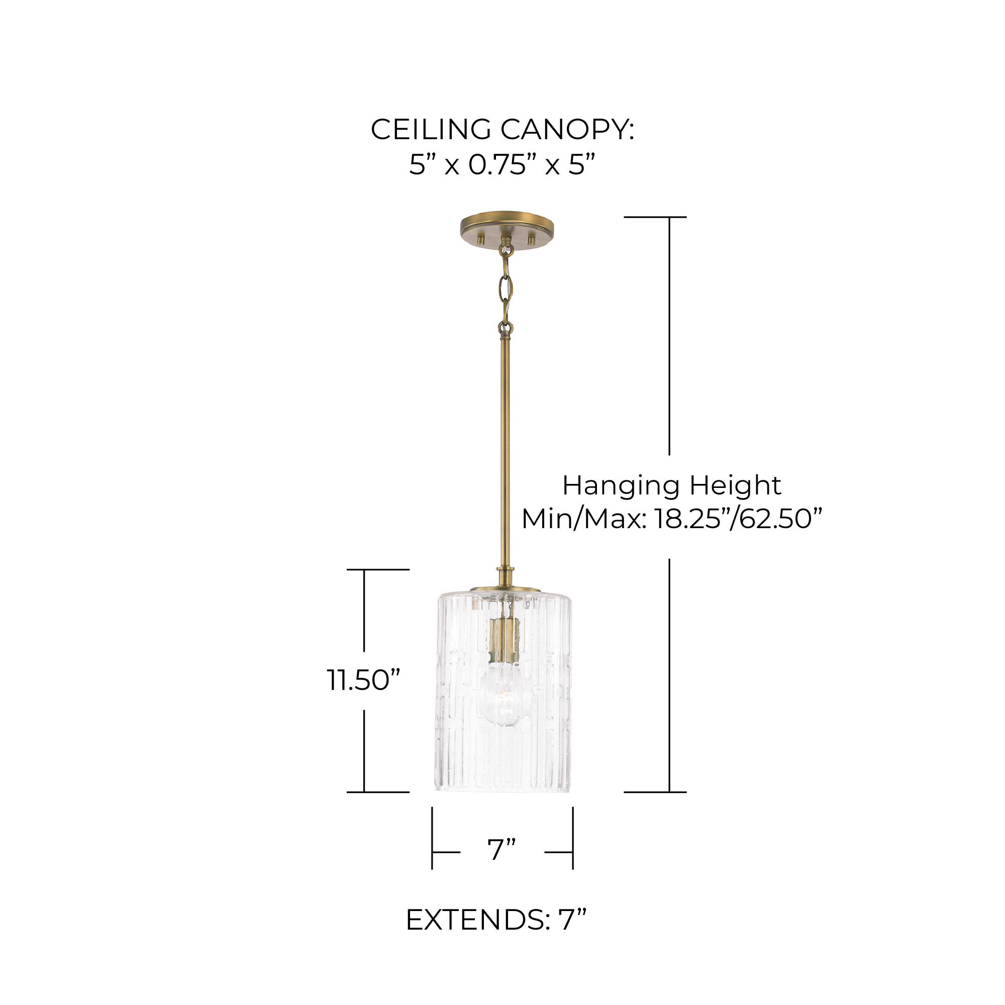 Item DescriptionCreate a simple and striking statement with the Emerson 1-light pendant. This fixture features elongated seeded glass with an embossed geometric pattern sparkles on a clean and classic frame.
