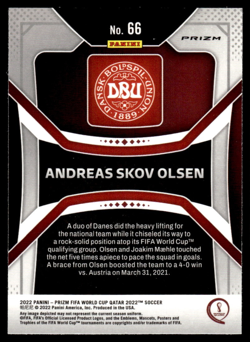 | 2022 Panini Prizm FIFA World Cup Silver Andreas Skov Olsen RC Denmark #66 |