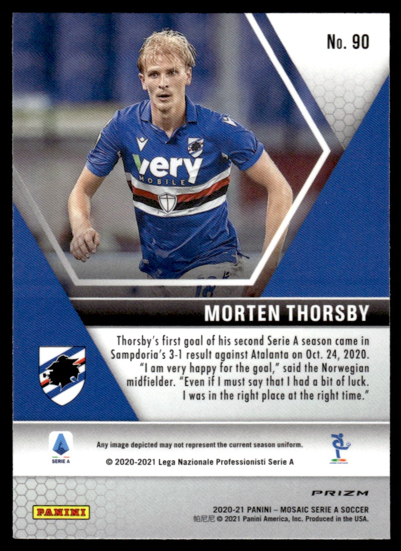 | 2020 Panini Mosaic Serie A Peacock Morten Thorsby RC Sampdoria #90 |