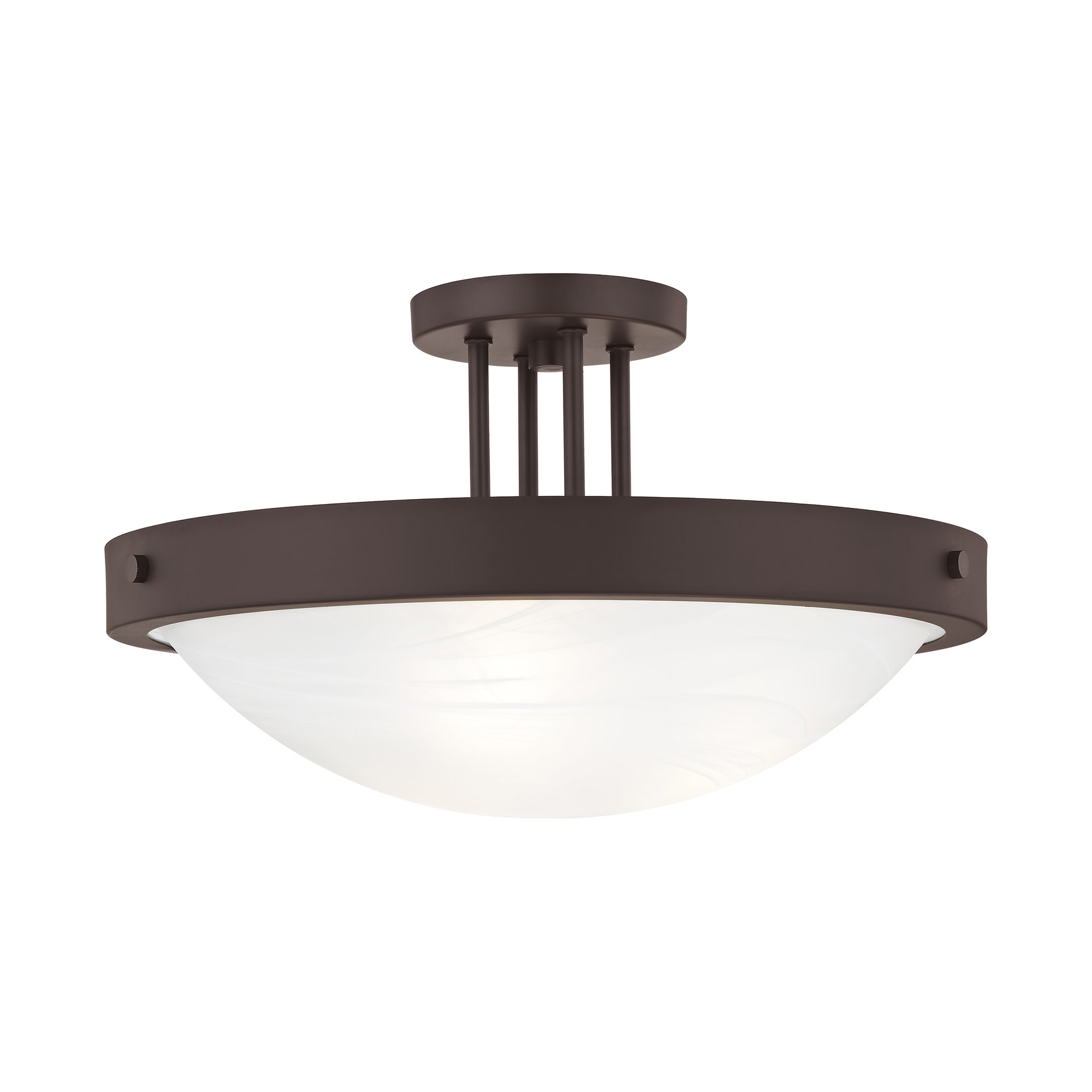 Item DescriptionHarper's sleek, retro design elevates the traditional flush mount with unique glass bound by a prominent metal ring and decorative knobs available in five finishes.