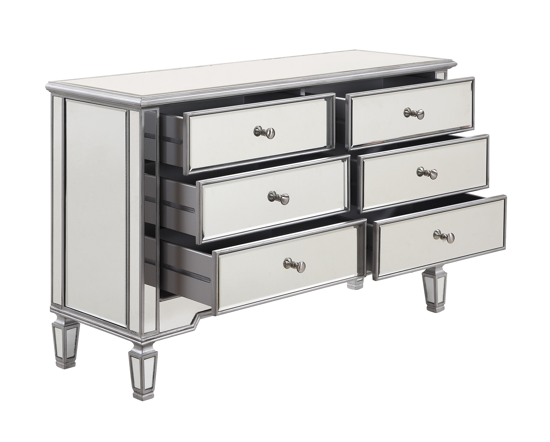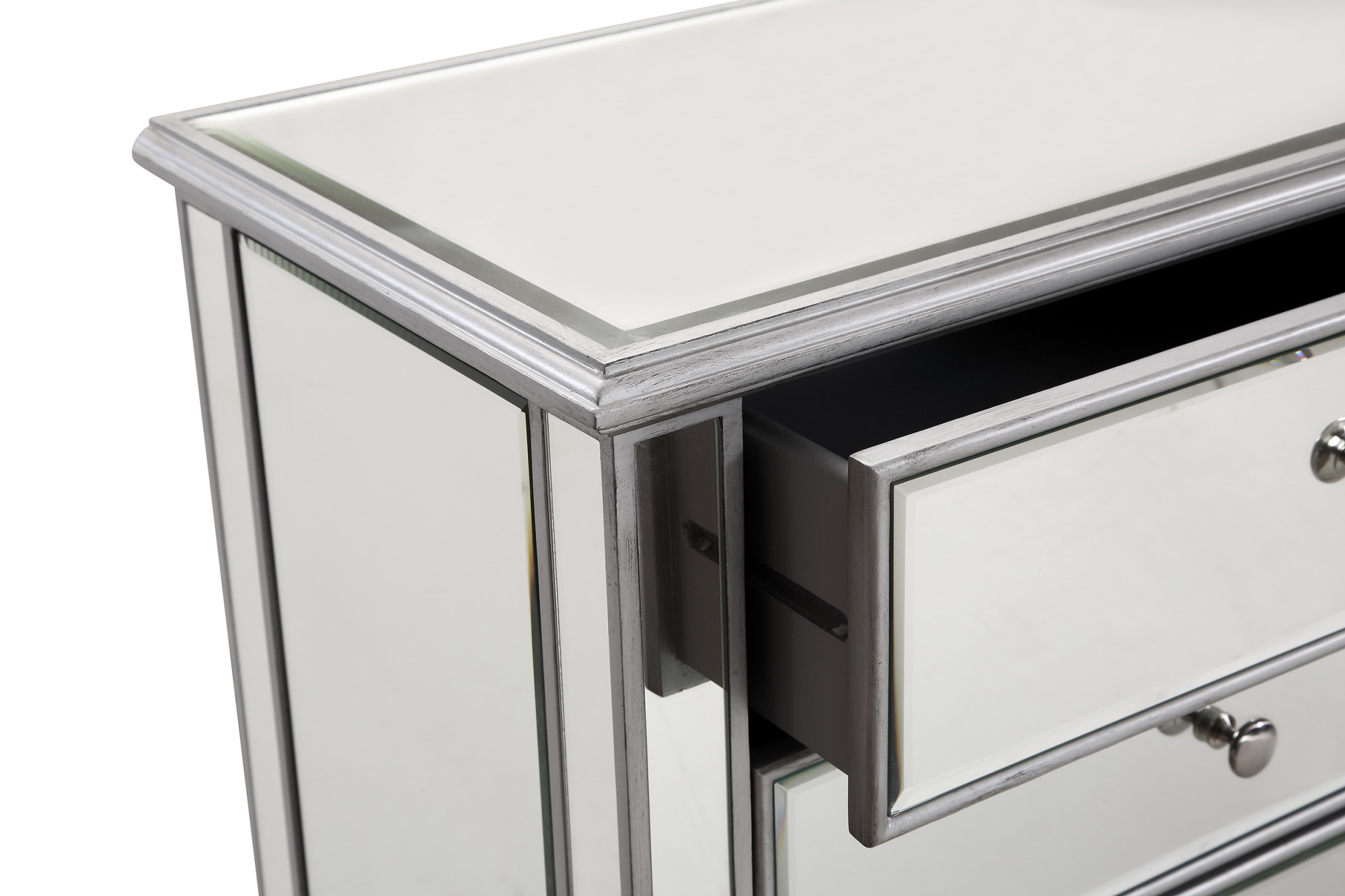 - Beveled clear mirror accents