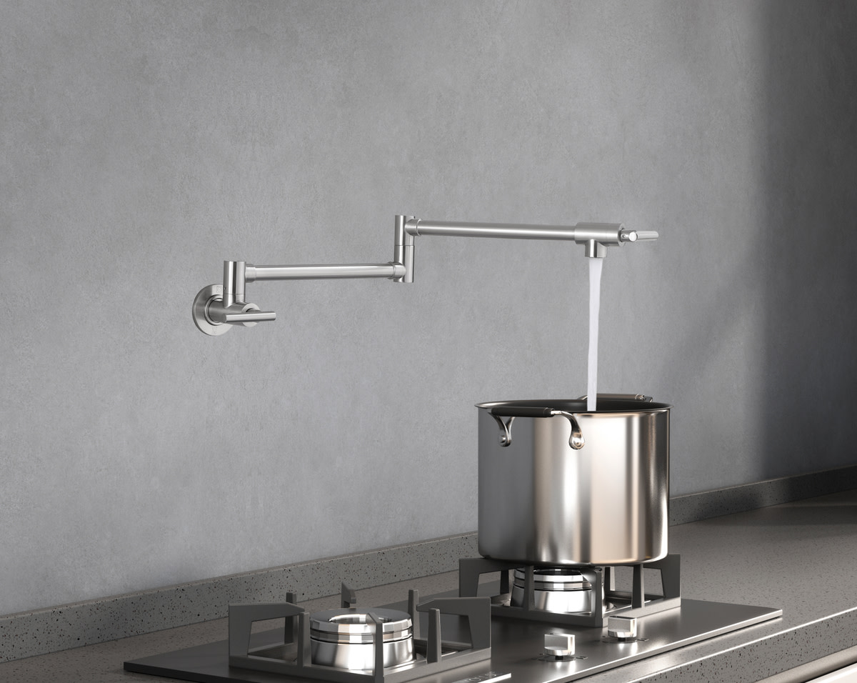Item DescriptionThis pot filler faucet is engineered with a sturdy brass cartridge, guaranteeing unmatched reliability and performance. This brass cartridge ensures smooth and consistent operation, making it the perfect choice for anyone who values both functionality and durability in their kitchen