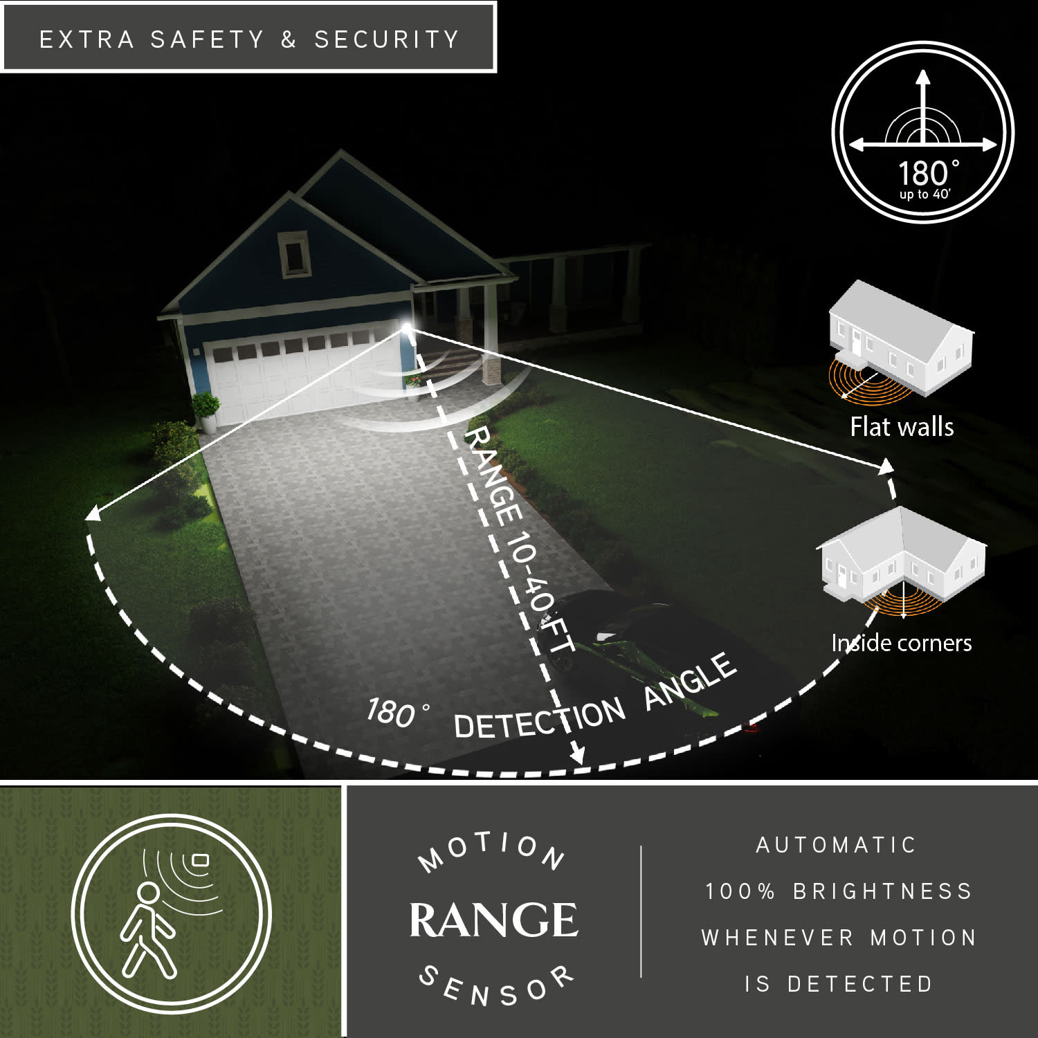 Item DescriptionDesigned with stately, yet rustic sophistication, the Outland collection is a solid choice for your outdoor space. The finish gives this barn light a warm and inviting elegance, and the finish inside the shade adds to the charm. This outdoor wall light is ideal for your covered porch, entryway, garage, or any other area of your home. Dualux patented dual-level security lighting is outdoor lighting made smarter - brighter light at dusk, dimmer at night, brightening instantly when it detects motion.