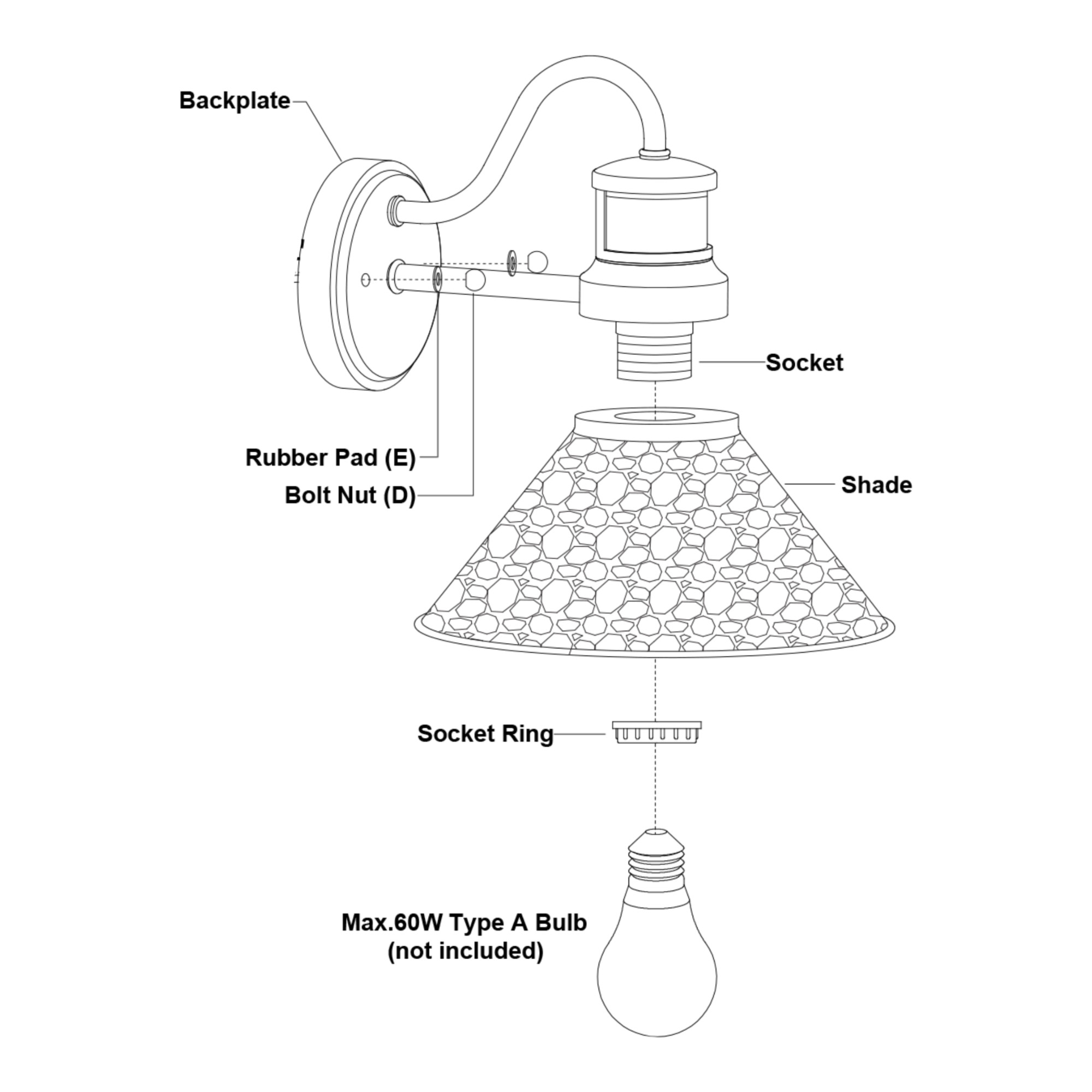 - Max Wattage: 60 watts
