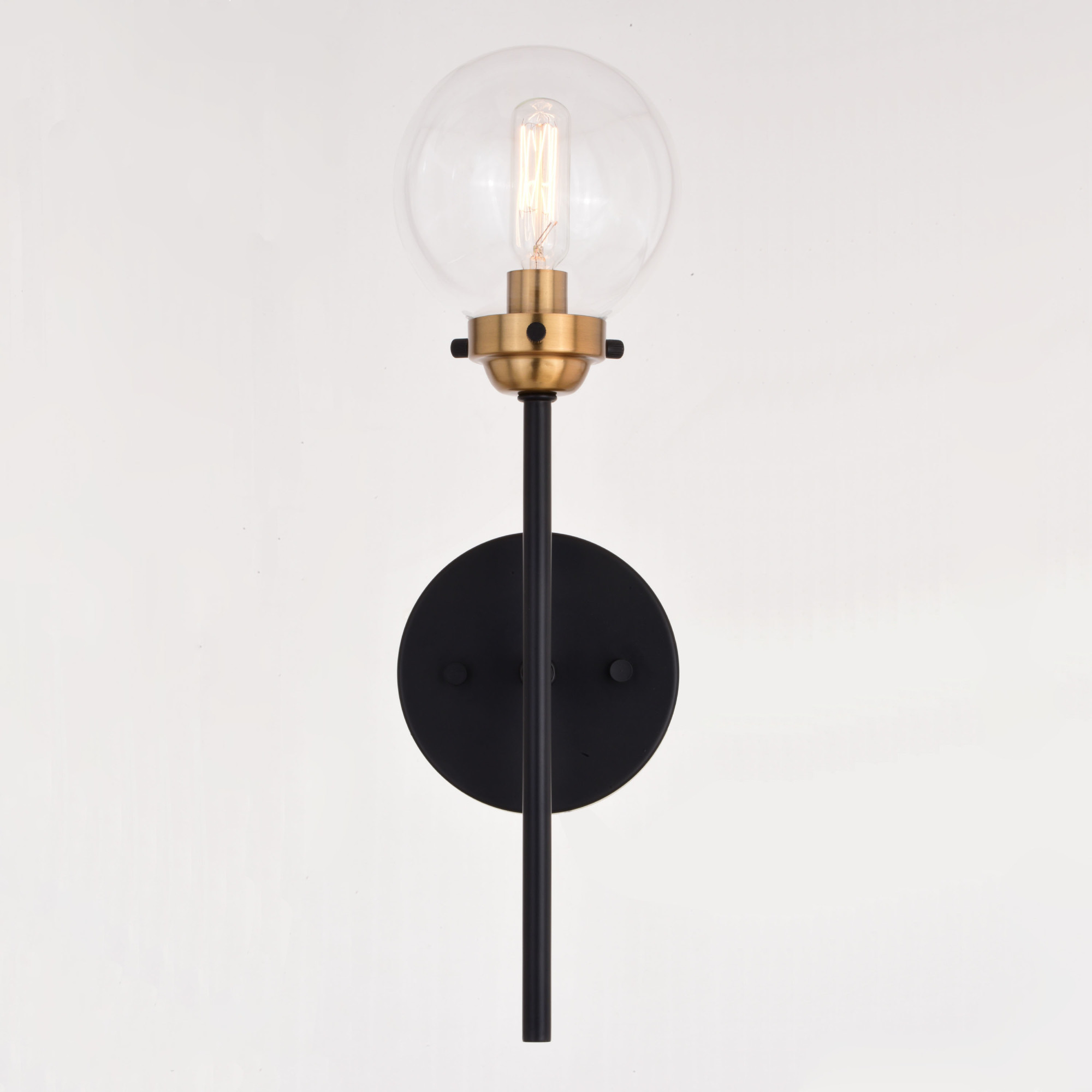 Item DescriptionOrbit 1 Light Brass and Oil Rubbed Bronze Industrial MCM Wall Sconce Clear Glass Globe