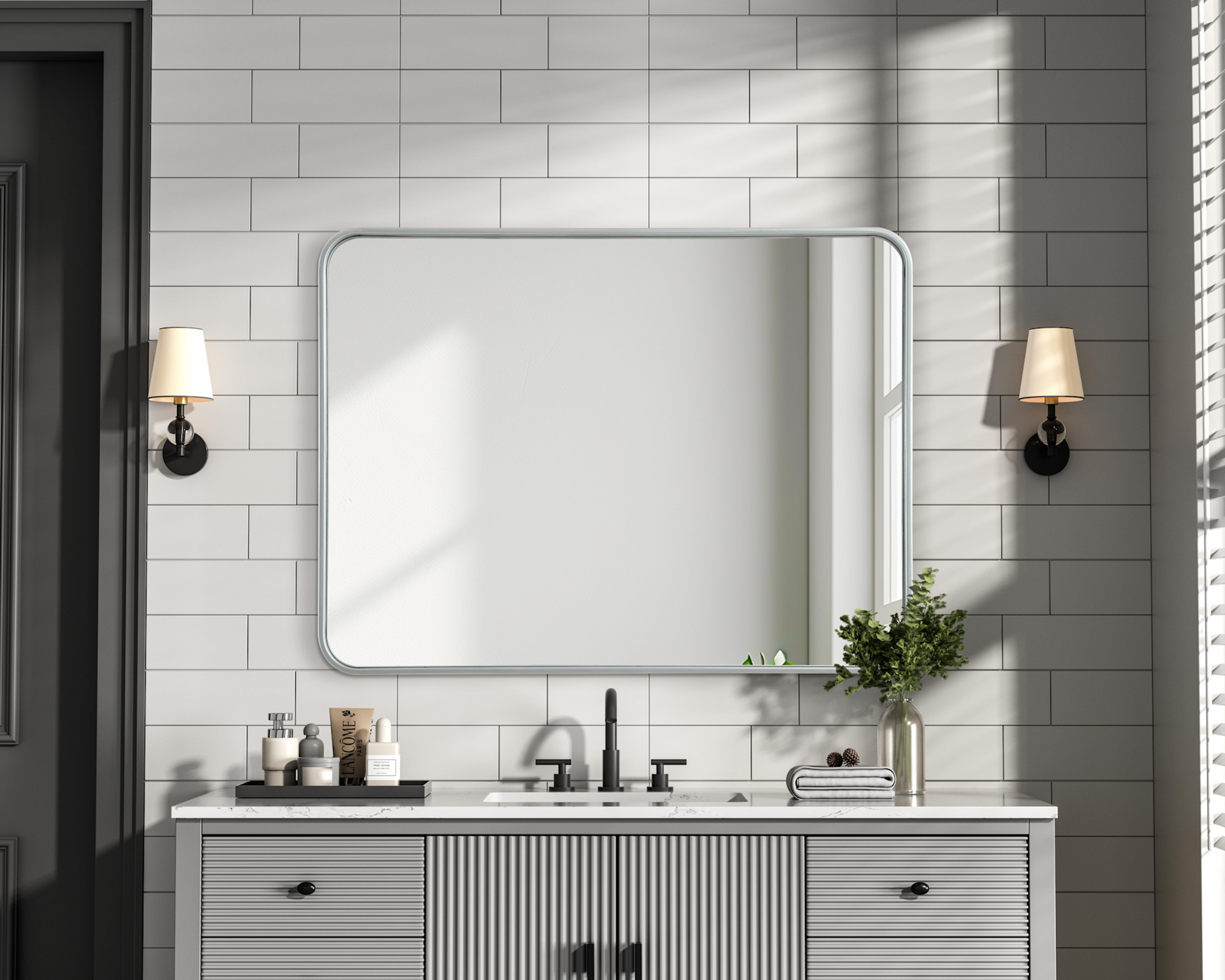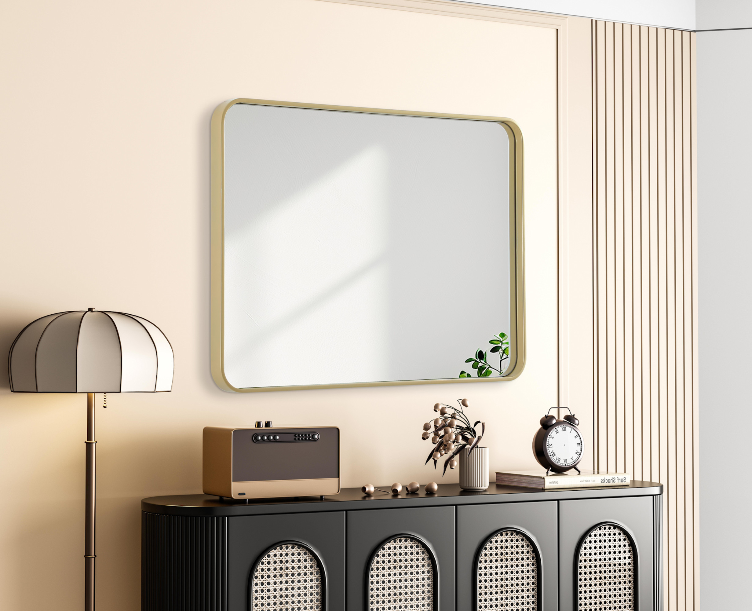 Elevate your home décor with this versatile wall mirror that combines functionality and modern design. Made from a sturdy combination of MDF, iron, and reflective mirror glass, this piece is built to last while adding a polished finish to any room. The extended depth of the frame not only provides a striking dimensional effect but also ensures the mirror’s presence commands attention as a focal point. Whether you're decorating a bedroom, bathroom, or entryway, its diverse shapes—including rectangle and square—offer plenty of options to suit your style. The hand-painted finish brings a subtle yet striking touch, complemented by rounded corners for a smooth and contemporary aesthetic. With four metal inset hangers, it's ready to hang vertically or horizontally, ensuring flexibility for any layout. Available in multiple sizes, this mirror is a statement piece that blends seamlessly into both modern and classic spaces.