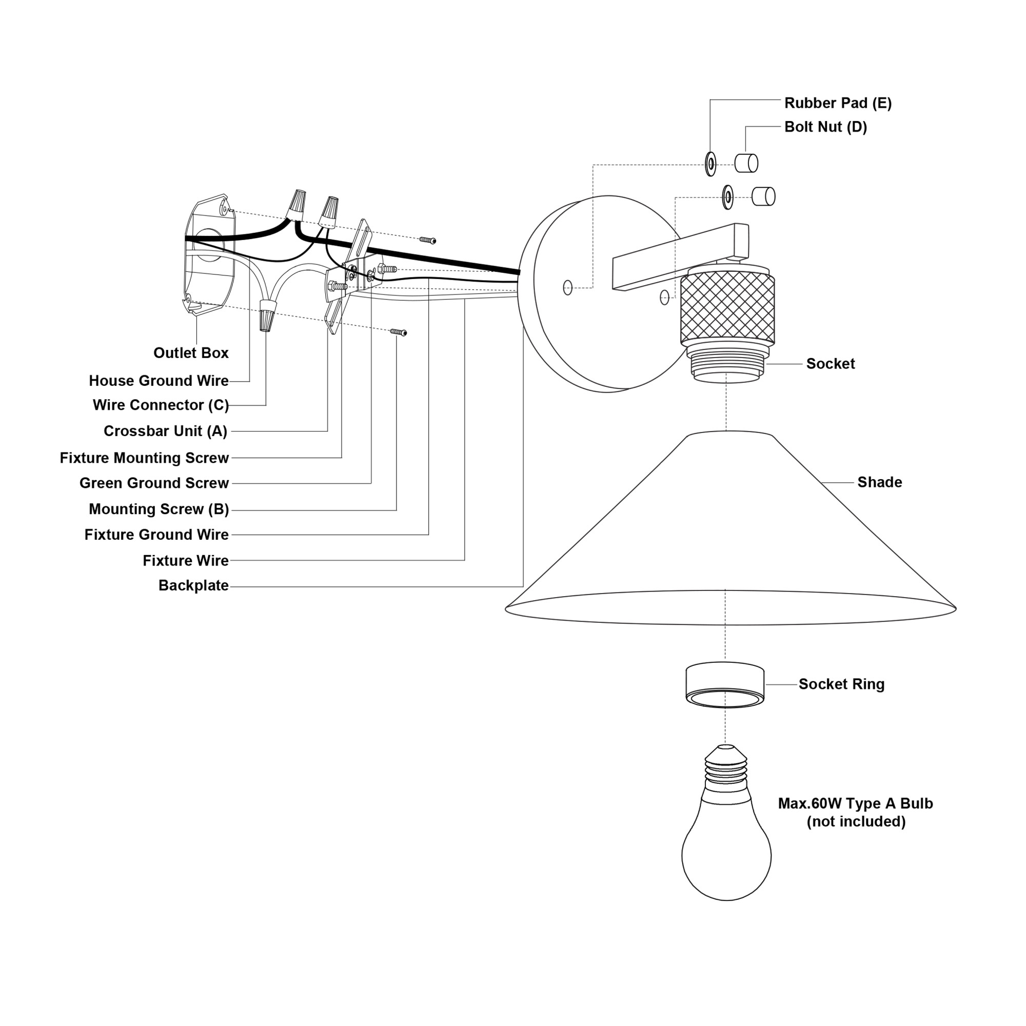 - Requires (1) 60 watt medium (E26) bulb