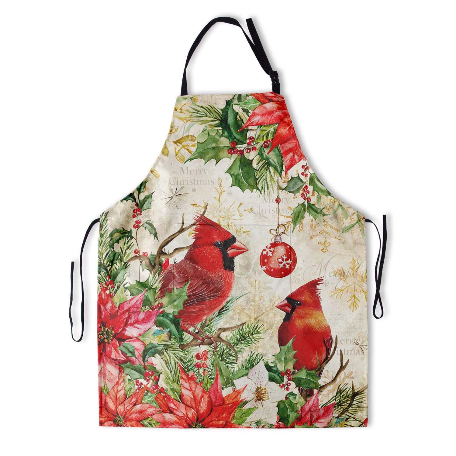 - HIGH QUALITY MATERIAL: The Christmas red bird apron with pocket is waterproof, durable and very soft for being made of polyester fabric,smooth silky feeling extra-durable fabric apron, indoor and outdoor use.