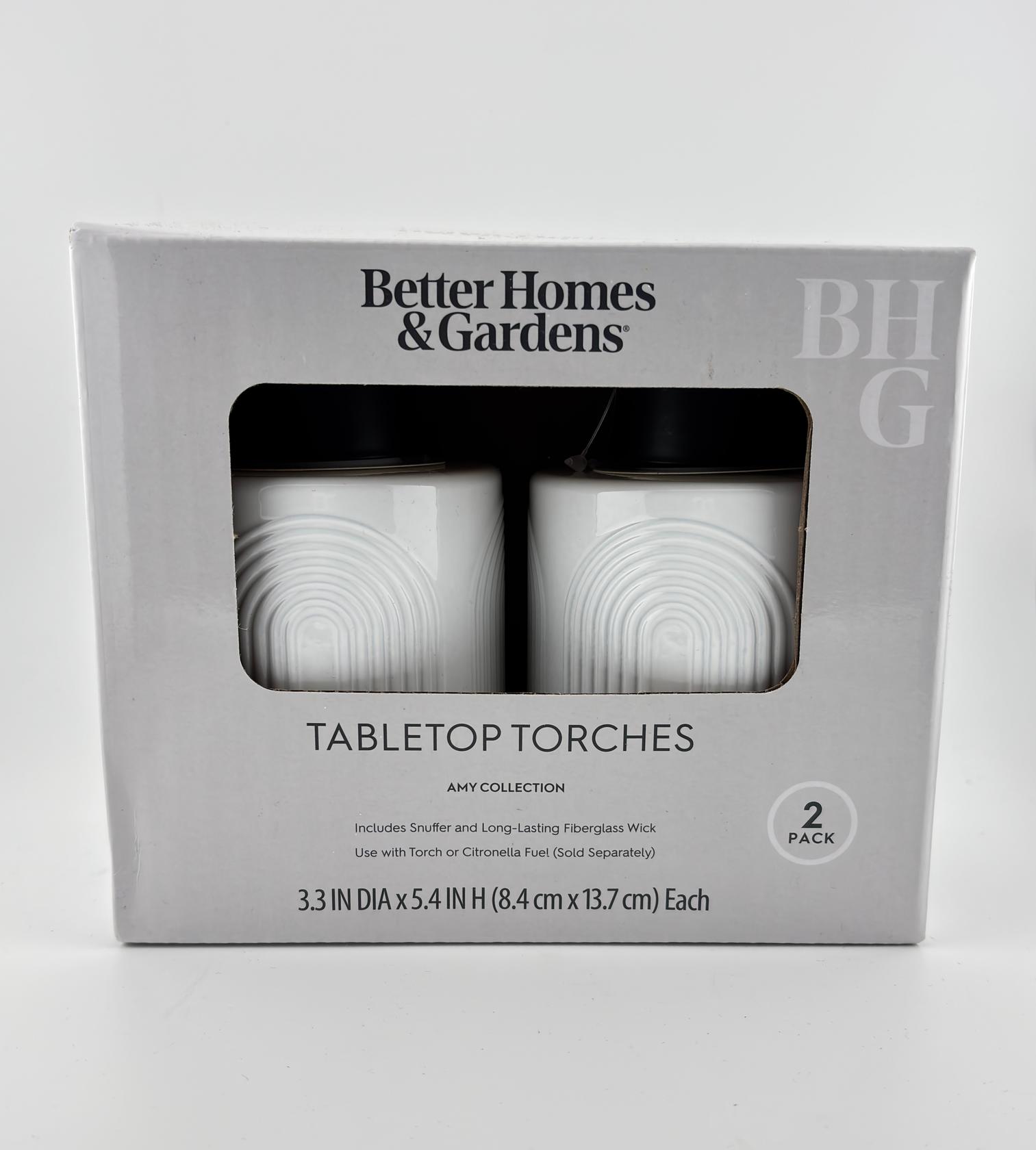 Add warmth and ambiance to your outdoor space with this Better Homes & Gardens Amy Collection Tabletop Torch. Perfect for patios, decks, balconies, or backyard gatherings, this stylish tabletop torch creates a cozy atmosphere while complementing your outdoor dcor.