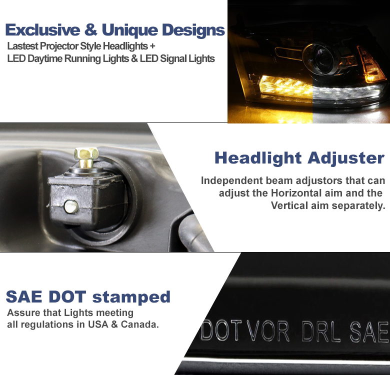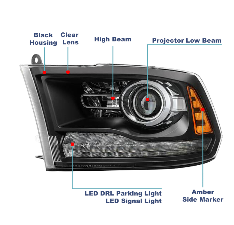 | Fitment | Compatible with 2009-2018 Dodge Ram 1500 Compatible with 2010-2018 Dodge Ram 2500 Compatible with 2010-2018 Dodge Ram 3500 *Fit models with factory dual / quad beams headlights only **Do not fit models with factory projector headlights |