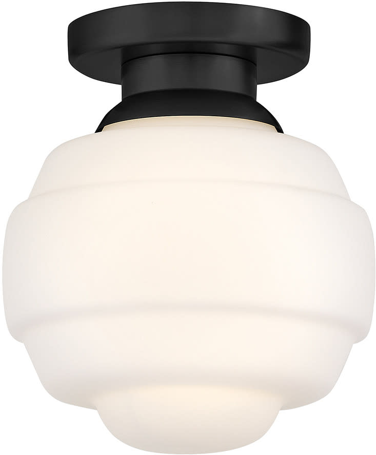 Item DescriptionRefined style with a practical design, Eclipse flush mount bring cosmopolitan sophistication anywhere, especially to an entryway, office, bathroom, bedroom, or kitchen. The smooth iron frame features a disk-shaped canopy and comes in a finish. A touch of color on top of the spherical glass shade brings character to this classic style. Living in the big city has never been this easy.