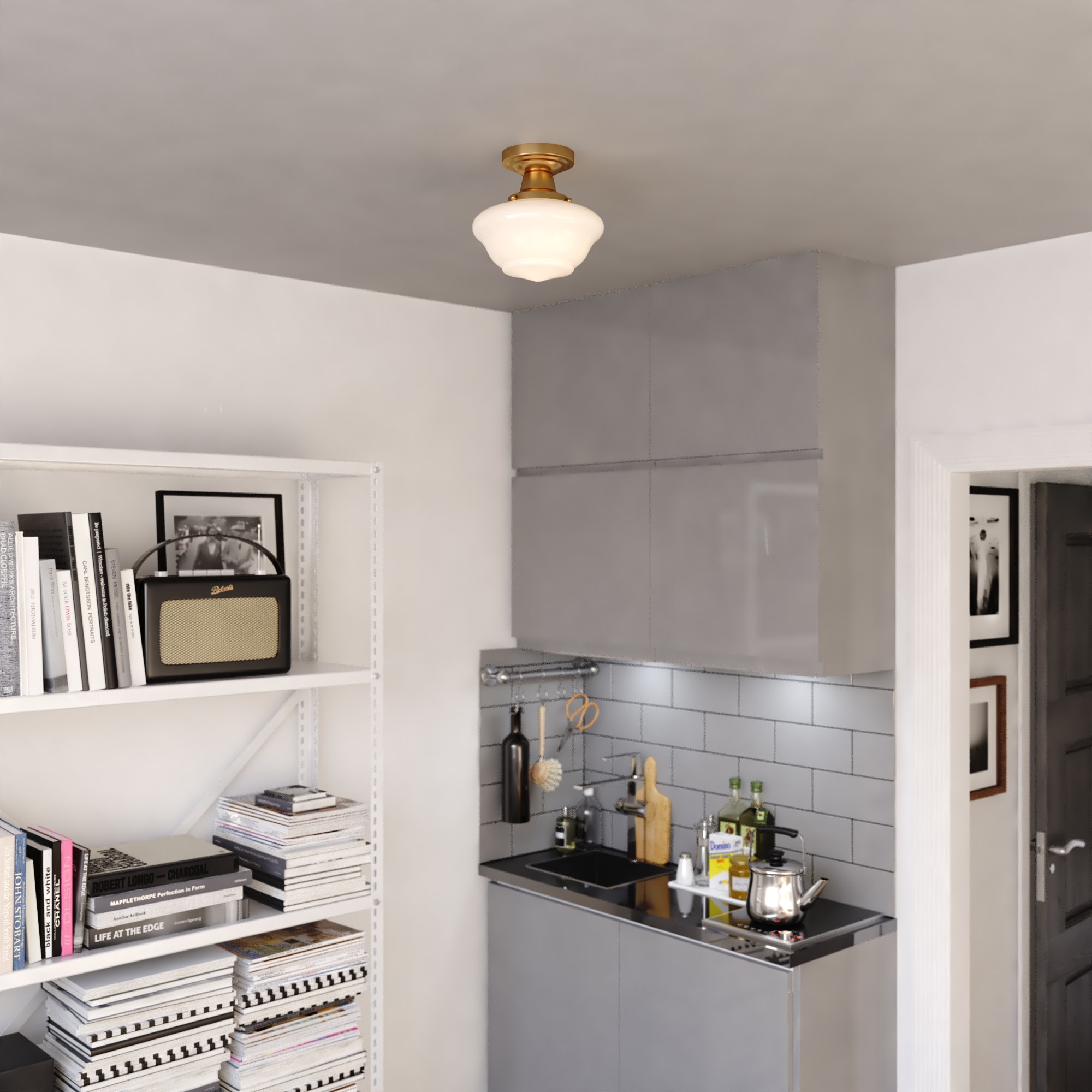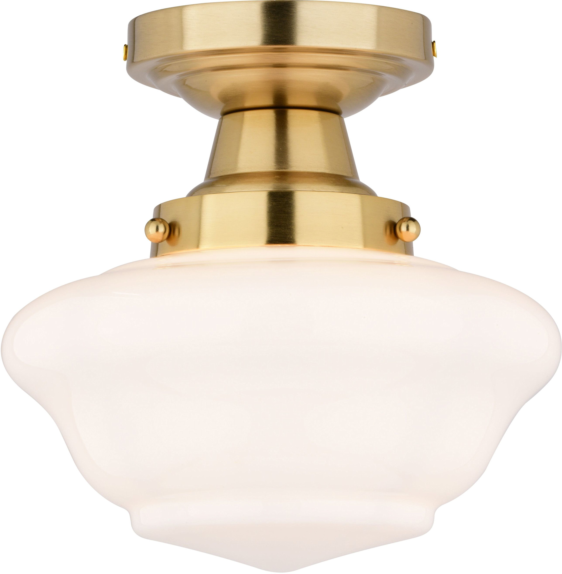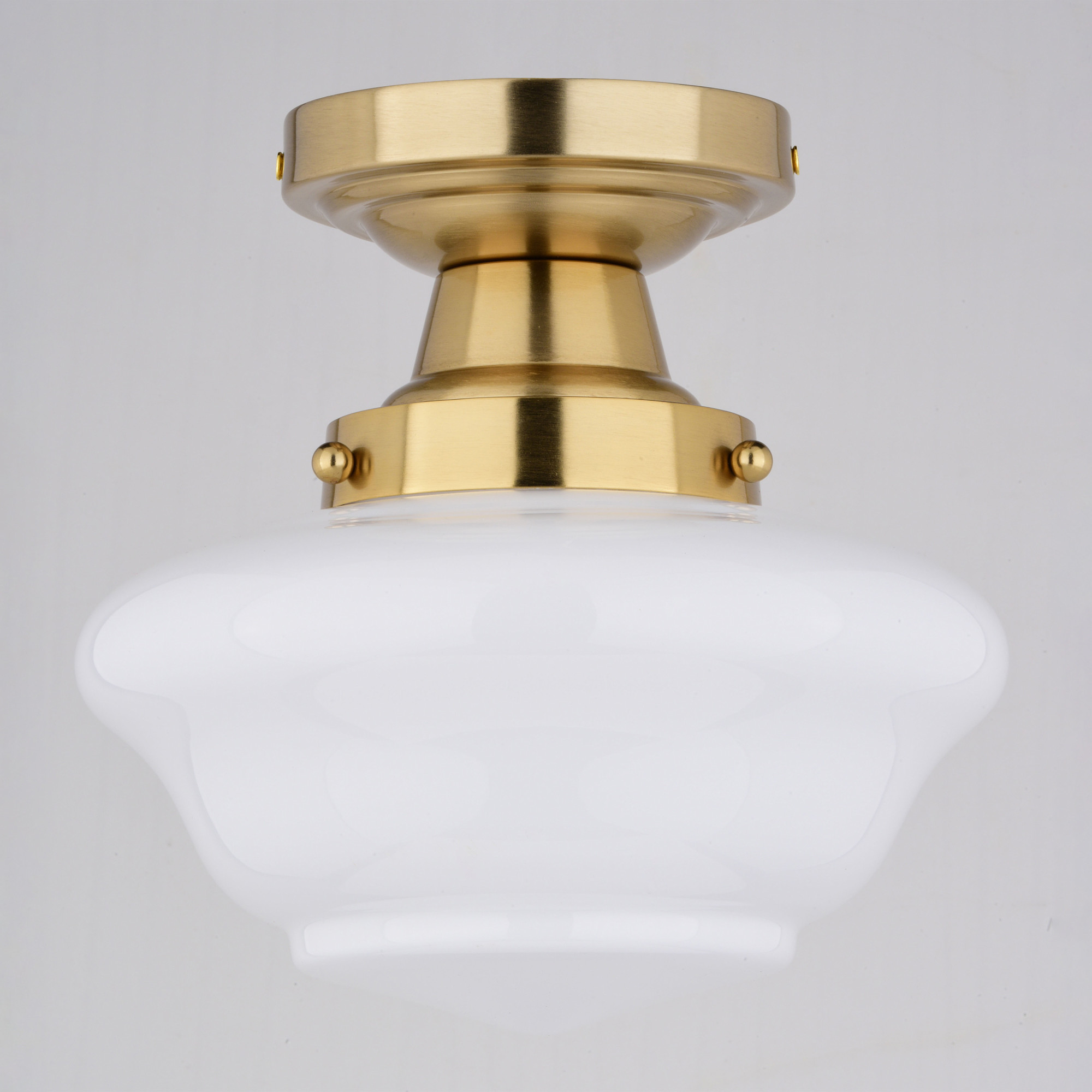 Item DescriptionAdd a touch of vintage charm to your home with the Eastgate semi-flush light's classic schoolhouse design. Its timeless shape and versatile gold finish make it a perfect addition to bedrooms, bathrooms, hallways, or entryways. Enjoy the warm and inviting illumination as the Eastgate light enhances your space with its nostalgic glow.