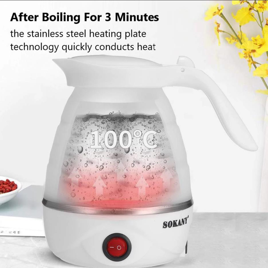 The electric folding kettle is ideal for use when traveling where space is at a premium.