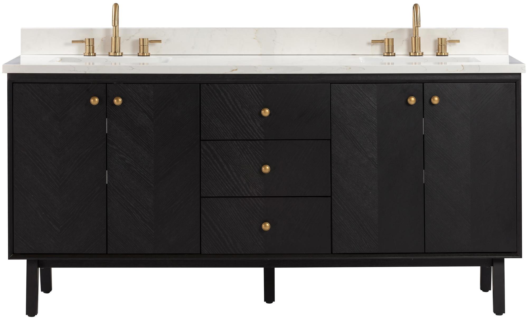 - Vanity cabinet includes matching decorative hardware