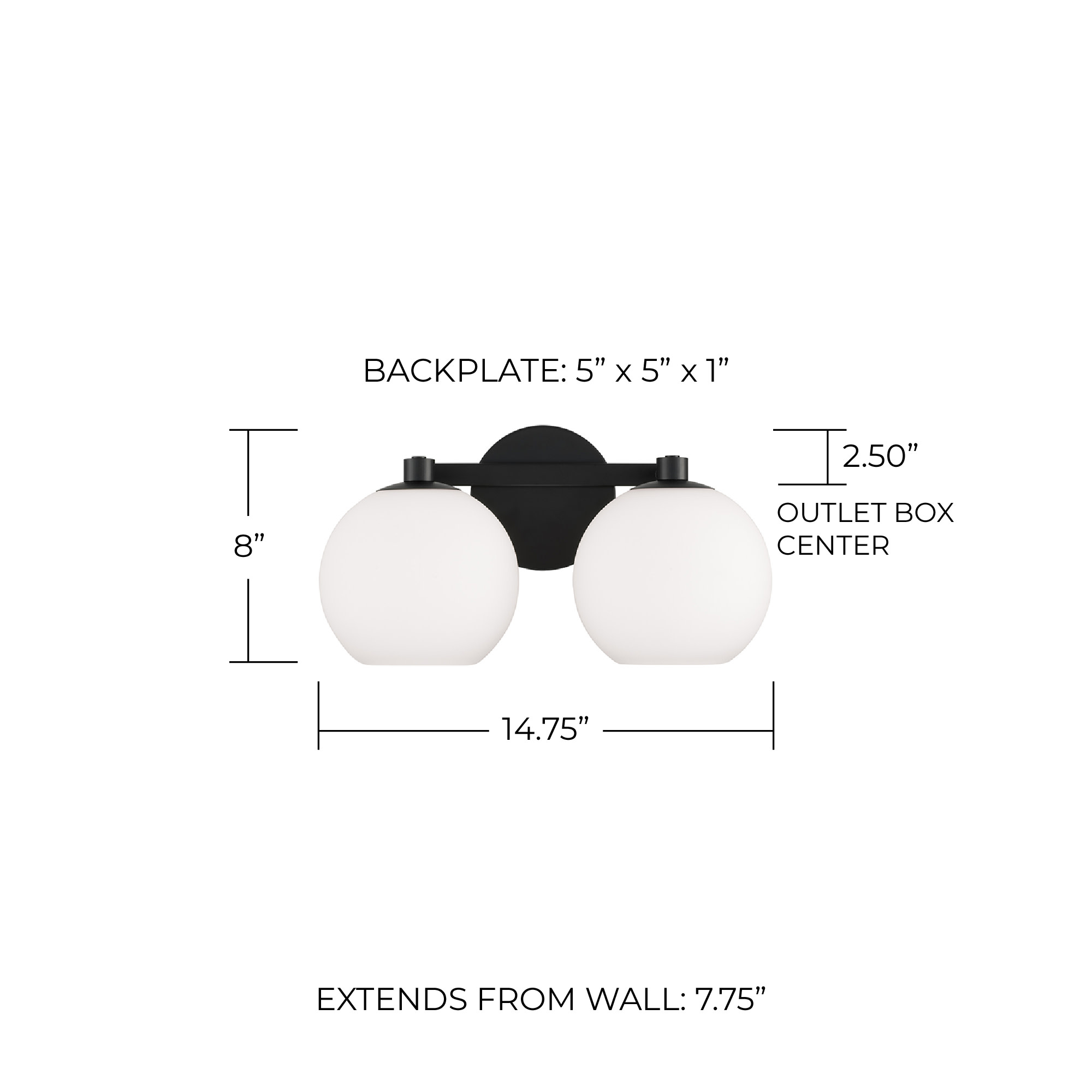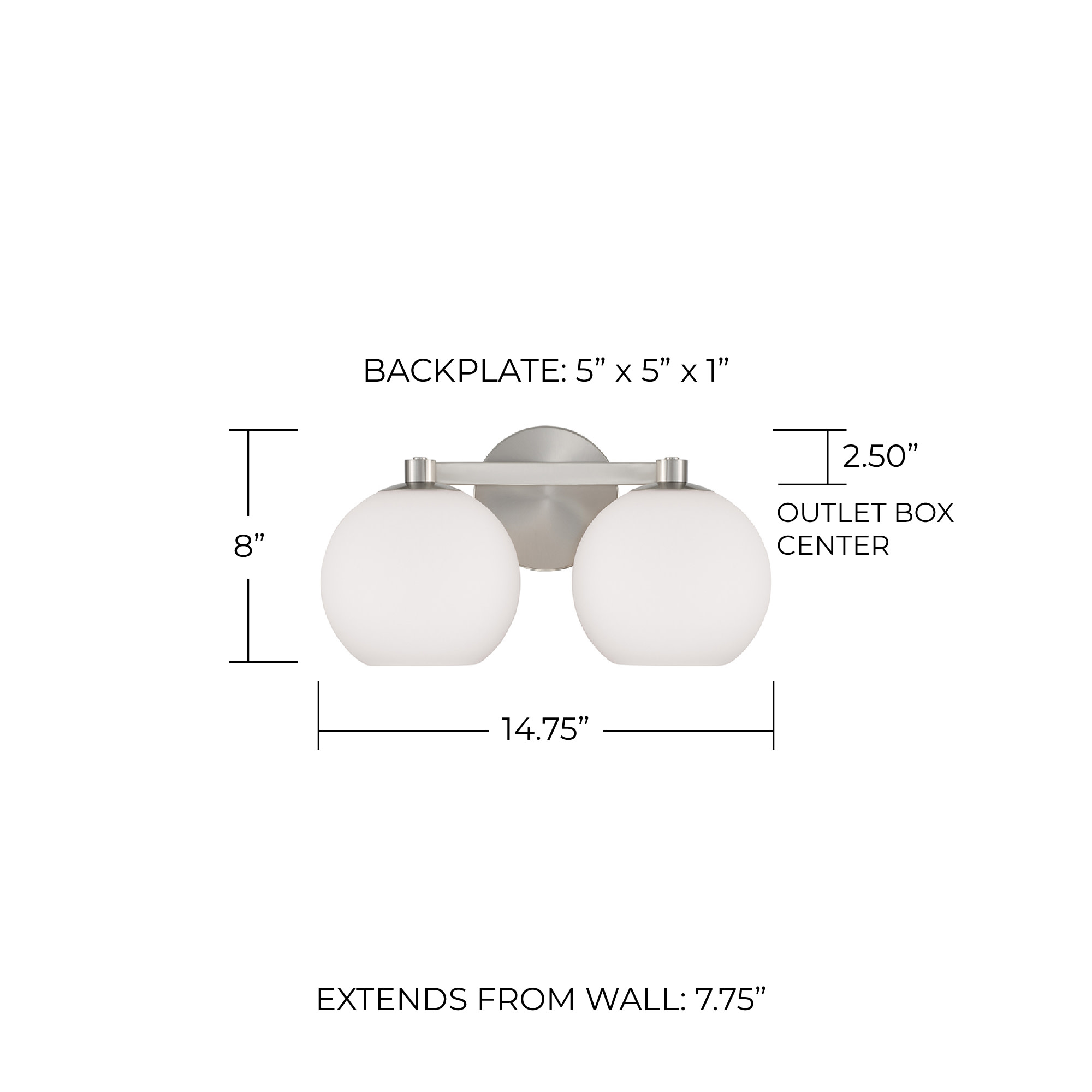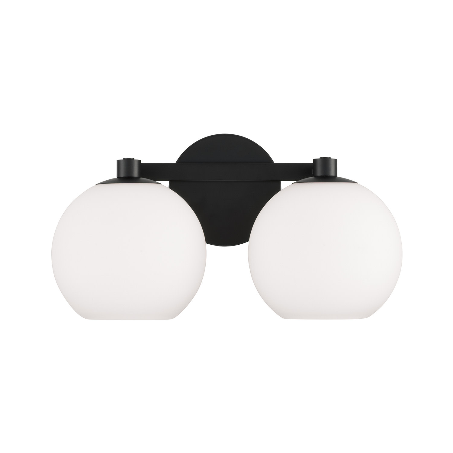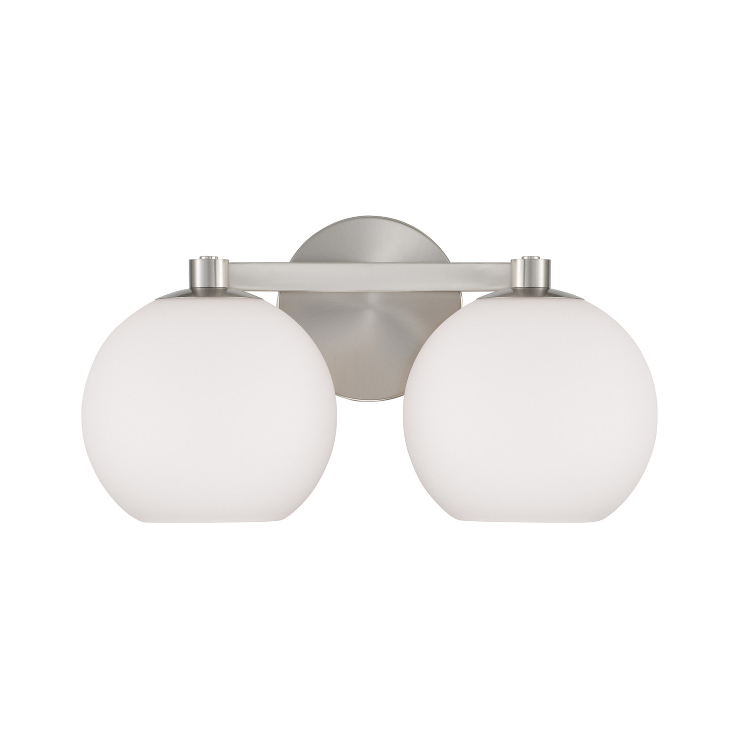 Item DescriptionCircular forms meet all-around versatility in the Ansley 2-Light Vanity for HomePlace. The Soft White glass globe shades illuminate sophisticated style, while the sleek finish creates a mid-century aesthetic.