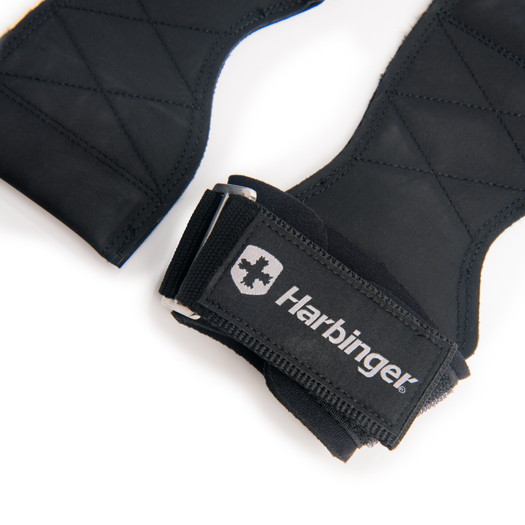 The Harbinger Lifting Grips are a 2-in-1 training tool, which can be used as a palm protector or lifting strap thatt lays flat as protection. Made with heat-activated BioForm clay, tacky leather, and cushioned padding, they conform to the bar for a secure, non-slip grip, helping to reduce calluses.