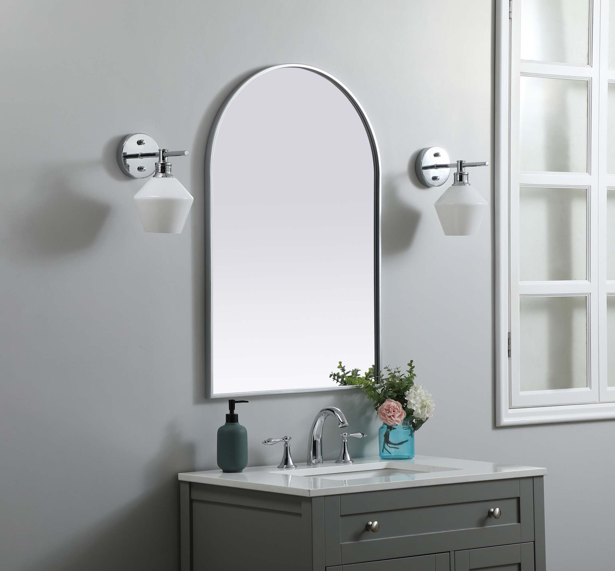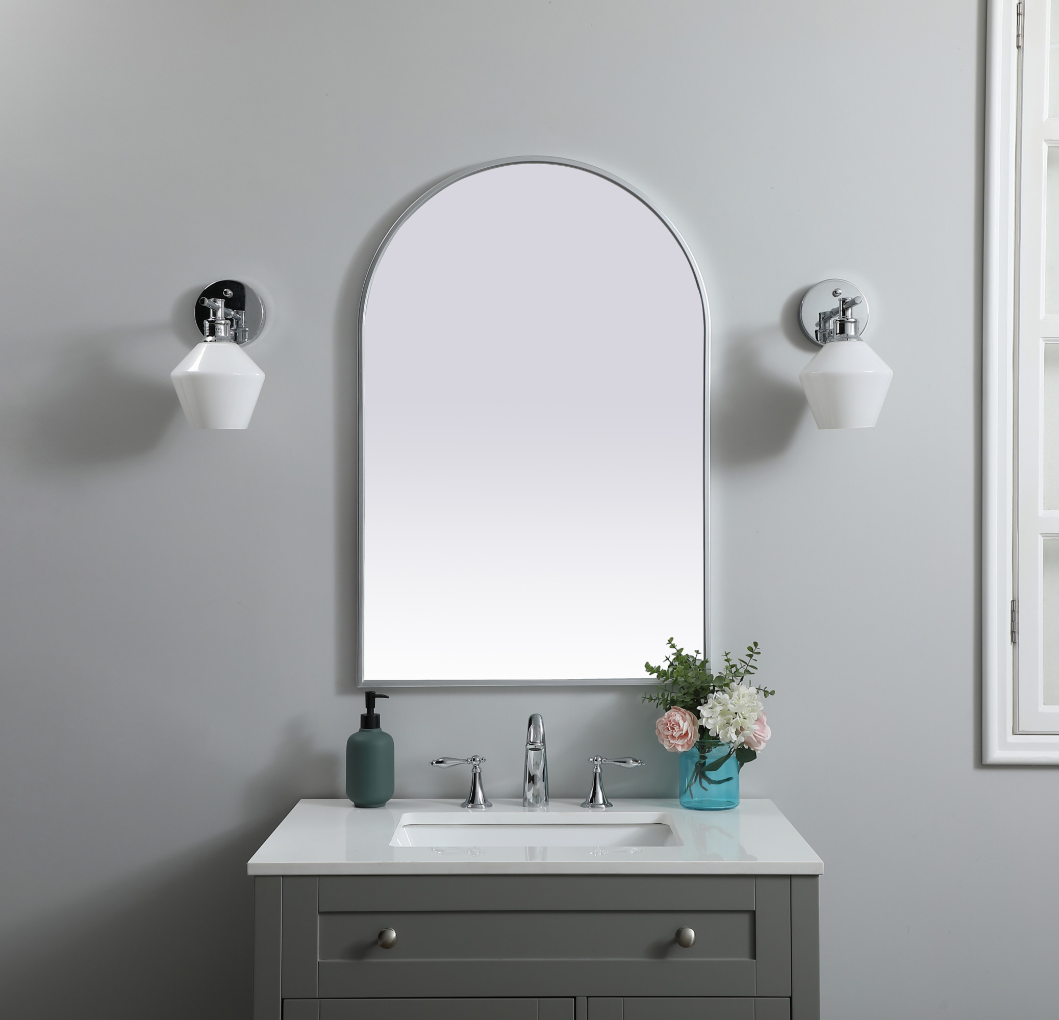 Item DescriptionInstantly open up any space in your home with this minimalist wall-mounted mirror. Crafted of metal, this mirror strikes a round silhouette. Its slender, clean-lined frame sports a classic finish, while the glass mirror within features a flat, for a brilliant reflection, letting the light bounce off to expand your space. Designed in an arch shape. Mount this work of art in any room of your choice for added visual impact.