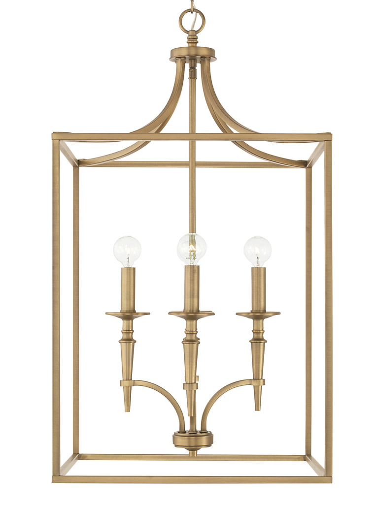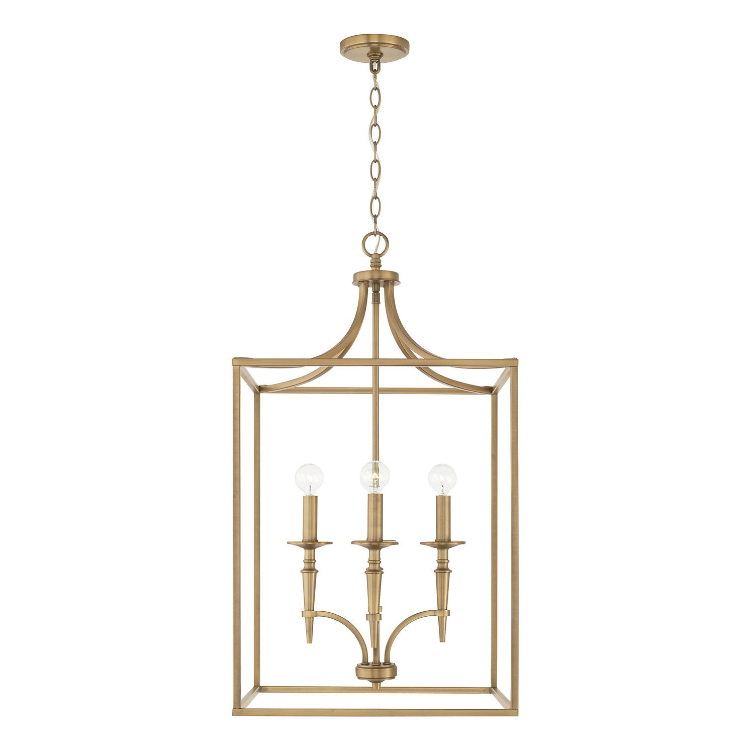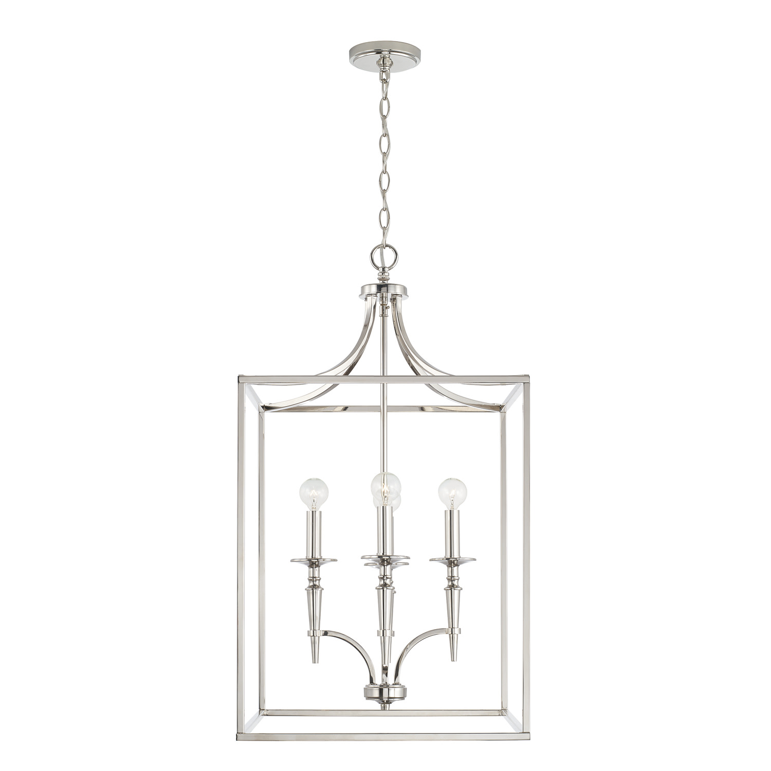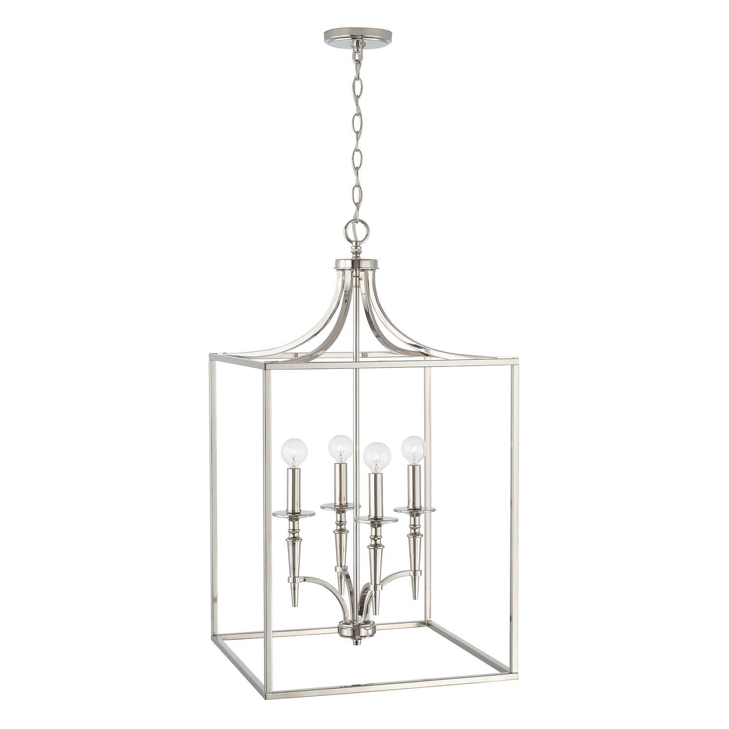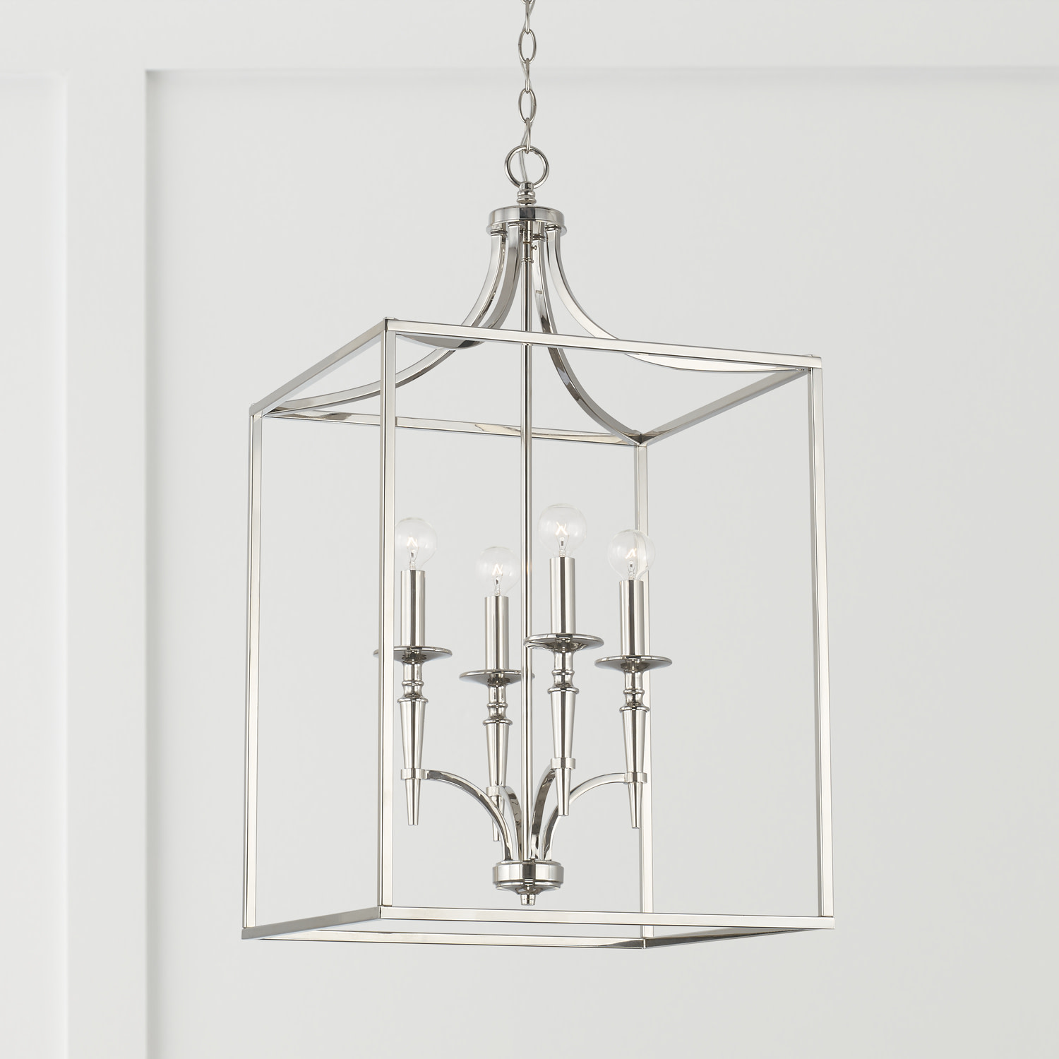 Item DescriptionStraight edges and striking curves intersect in the Abbie 4-light foyer pendant. The dramatic candlestick detailing brings a contemporary nod to the lantern design.