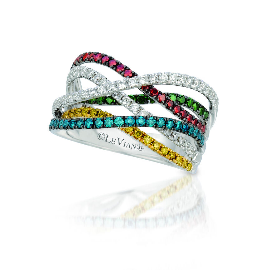 Le Vian Grand Sample Sale Ring featuring 1/5 cts. Cherryberry Diamonds , 1/5 cts. Kiwiberry Green Diamonds , 1/2 cts. Vanilla Diamonds , 3/8 cts. Fancy Diamonds set in 14K White Gold