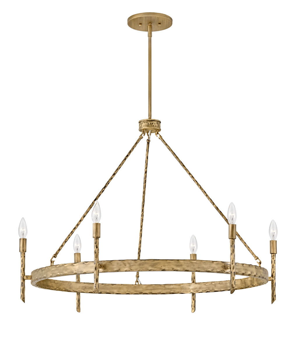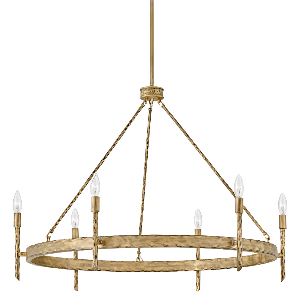 Item DescriptionTress approaches style from different angles. Available in a variety of styles including a ring and linear chandelier, pendant, and sconce - recognized by its hammered metal rods of Champagne Gold, Forged Iron, or Burnished Nickel (sconce only). Tress uses this natural look to add an organic feel to transitional decor.