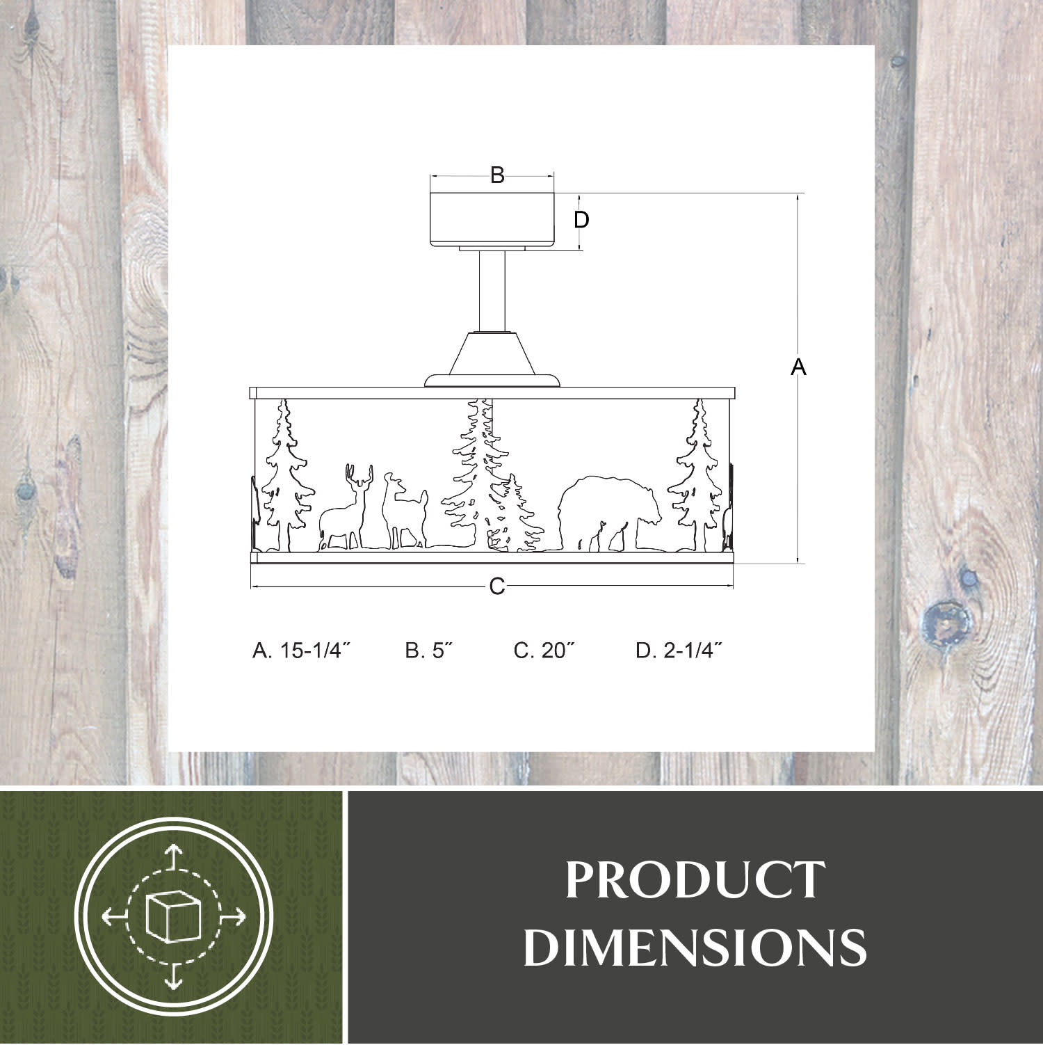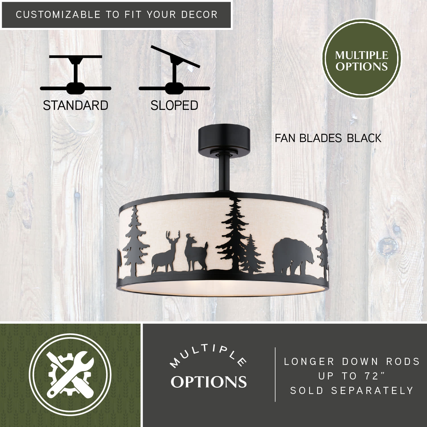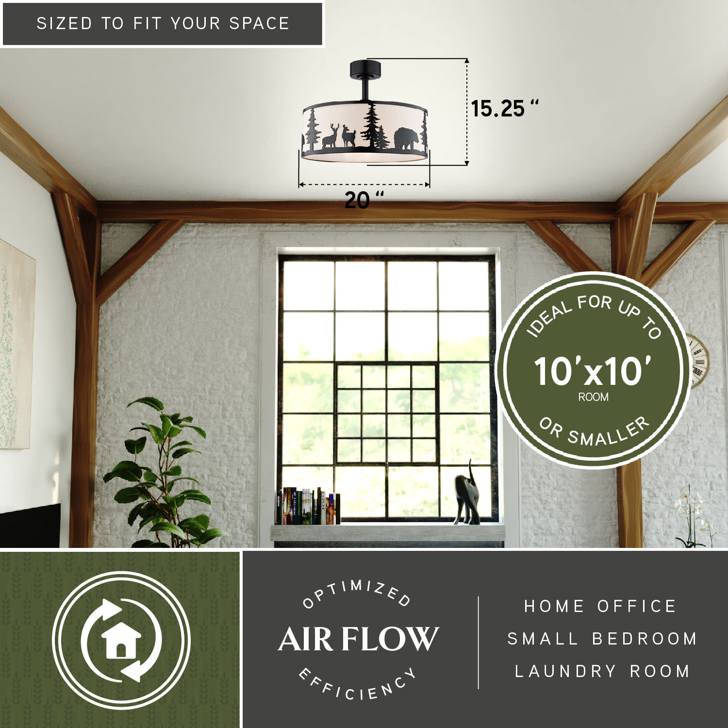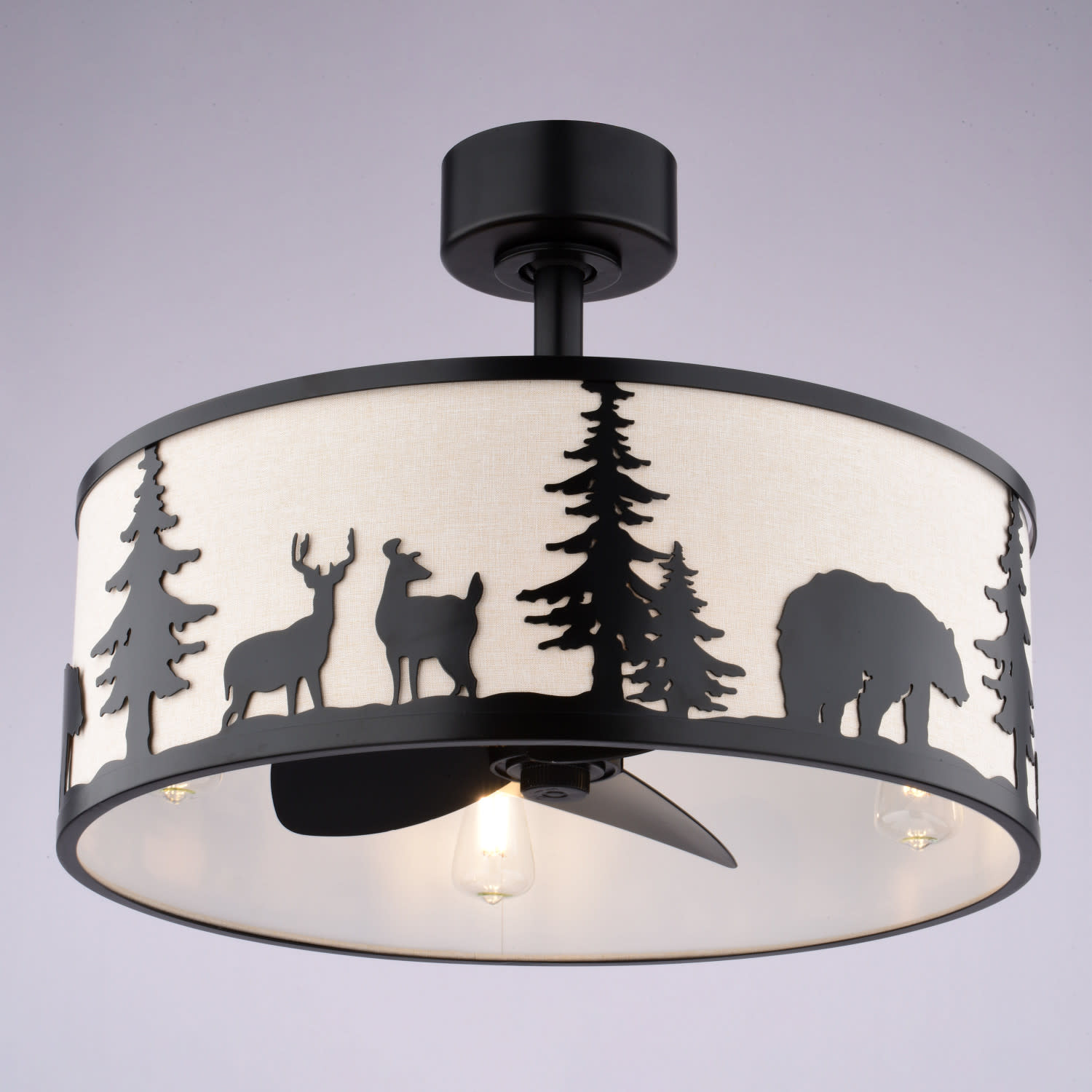 Item DescriptionInspired by what draws us to the great outdoors, the Acadia ceiling fan is a unique and affordable way to enhance your home's ambiance. Its rustic design, featuring a white linen shade with charming wildlife imagery, adds warmth and charm to any living room, game room or bedroom living space. Enjoy the gentle breeze and soft glow of its dimmable LED lighting, creating a cozy and inviting atmosphere perfect for busy families.