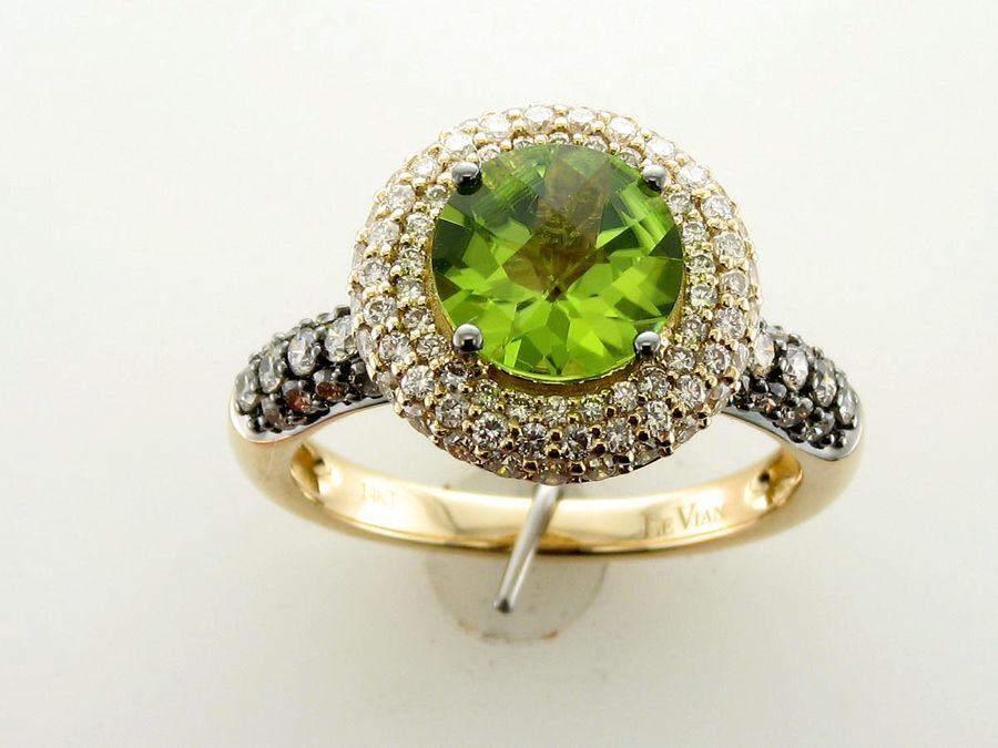 Le Vian Ring featuring 1 3/4 cts. Green Apple Peridot, 5/8 cts. Chocolate Diamonds, 5/8 cts. White Diamonds set in 14K Yellow Gold