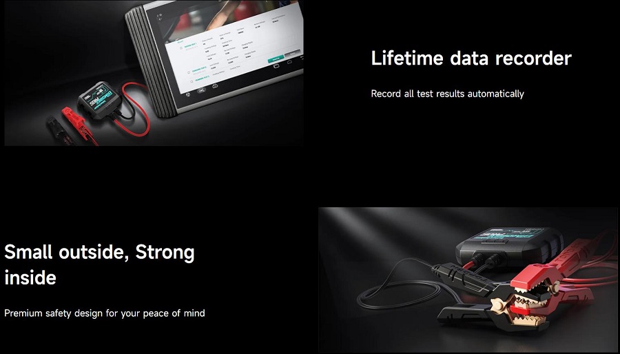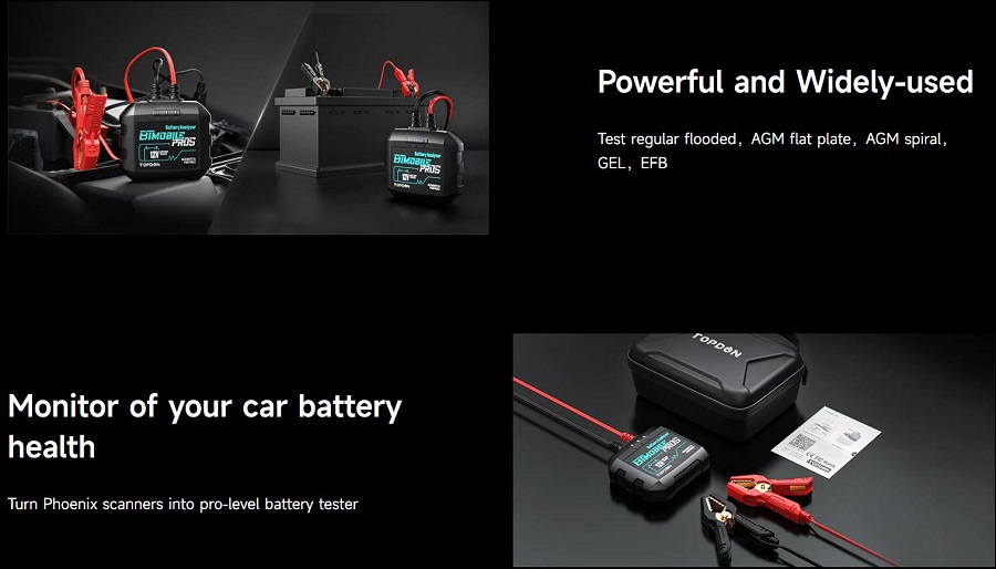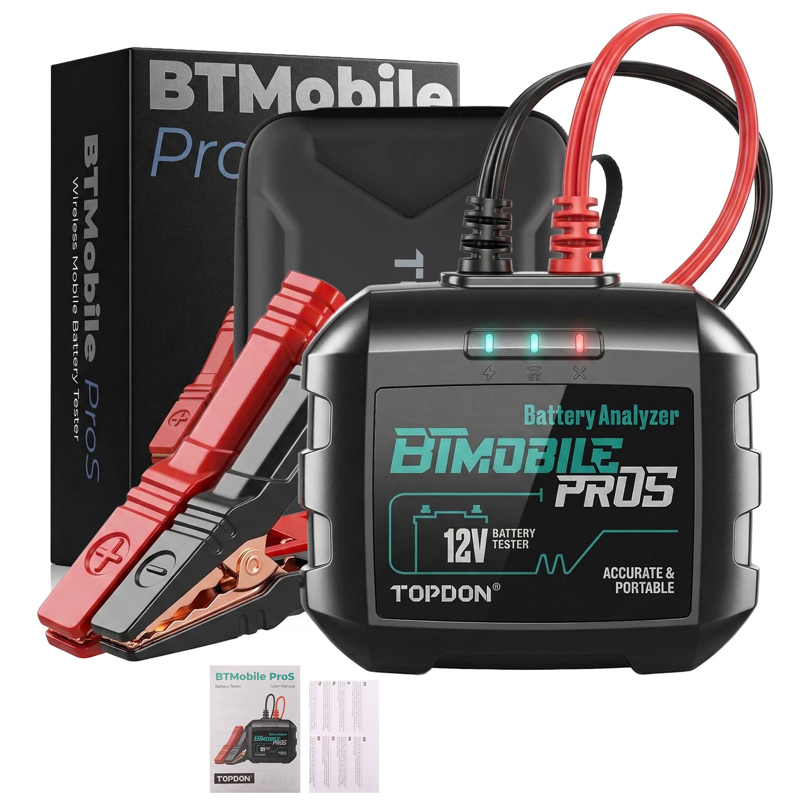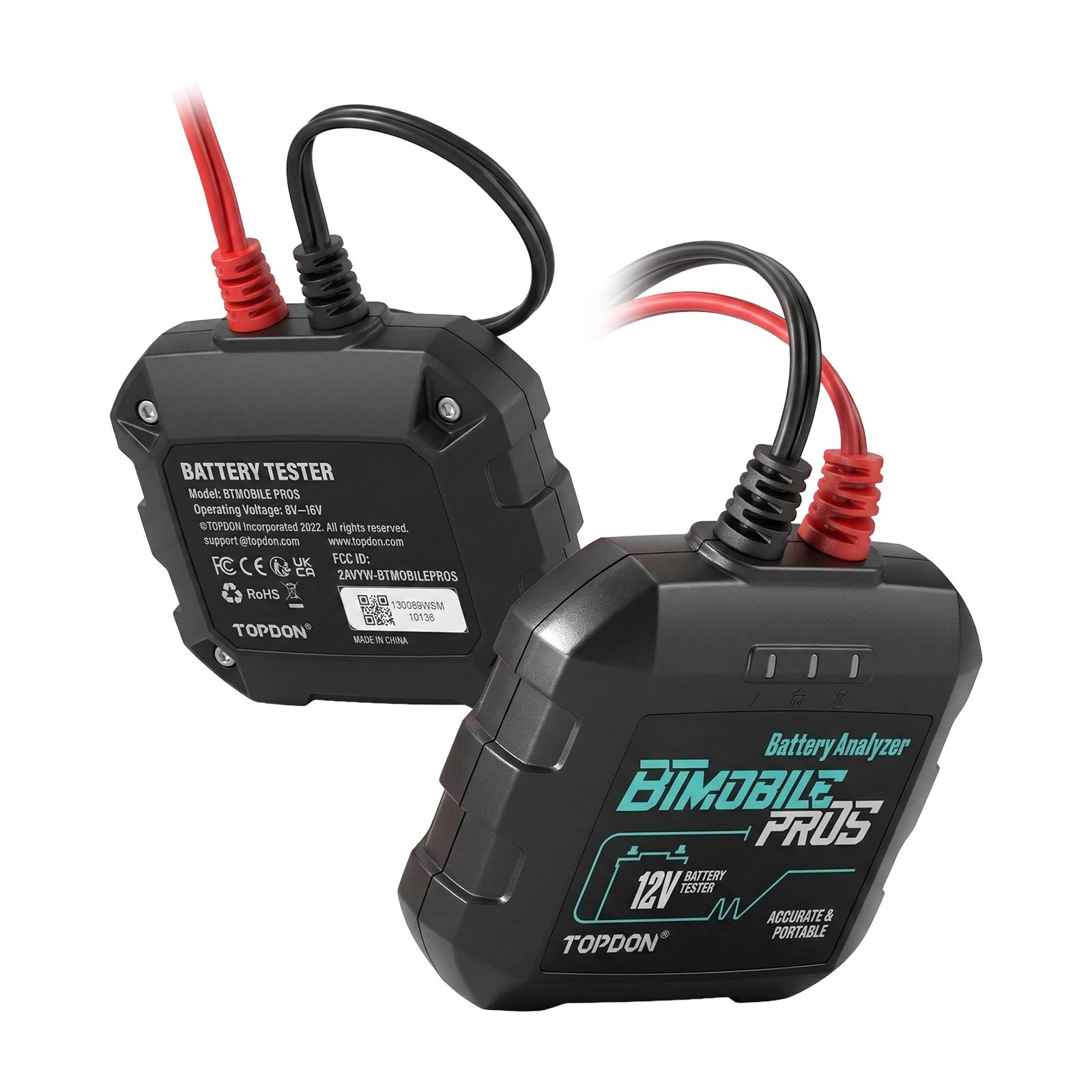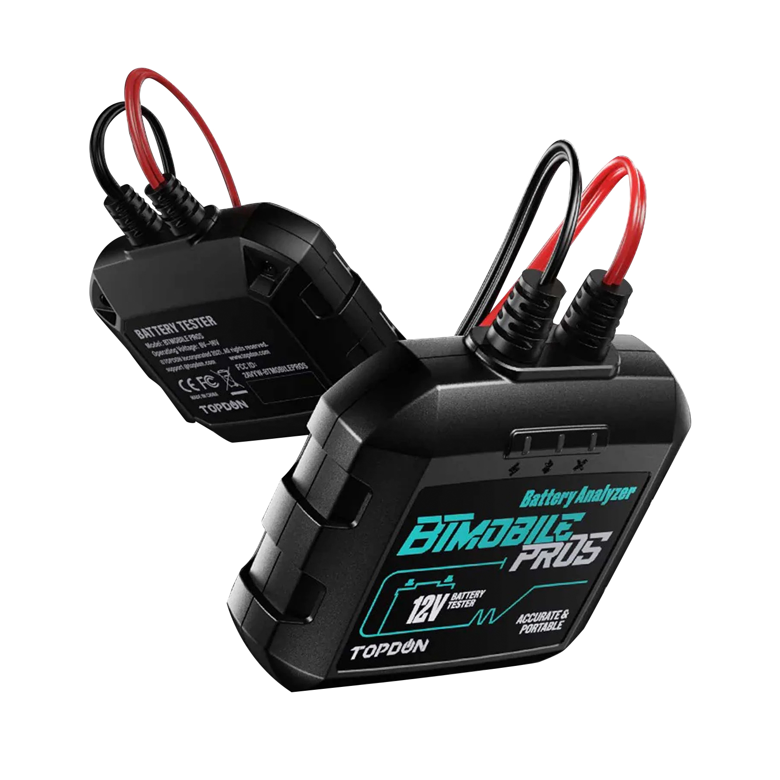 BTMobile ProS is TOPDON's latest Battery Analyzer. It works on 12V batteries within the 100-2000 CCA. It also meets CCA, BCI, CA, MCA, JIS, DIN, IEC, EN, SAE, and GB battery specifications. It uses cutting-edge conductivity detection technology to pinpoint bad 12V battery cells. It outputs easy-to-understand information about the vehicle battery health, the alternator's charging, and the starter's cranking conditions. The built-in Ultra Safe function can protect against short circuits, reverse polarity, and over-voltage that allow it to connect to any battery safely.